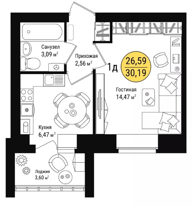 Количество комнат 1