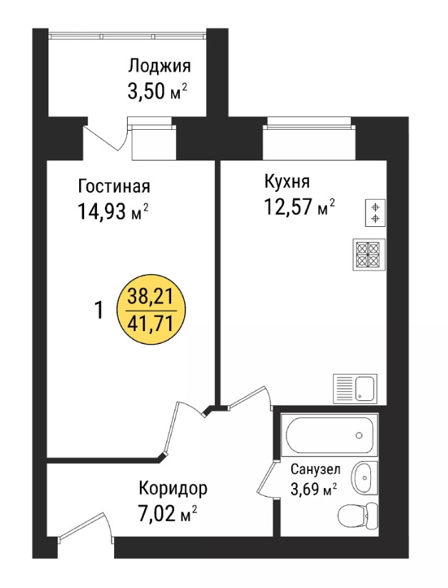 Жилая площадь 41 м2
