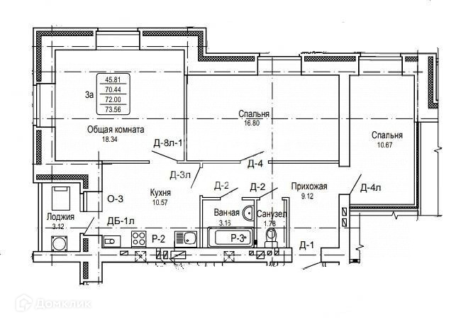 Общая площадь 73 м2