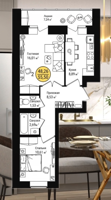 Эти квартиры предоставляют возможность жить на двух уровнях, что создает дополнительное пространство и удобство для большой семьи.