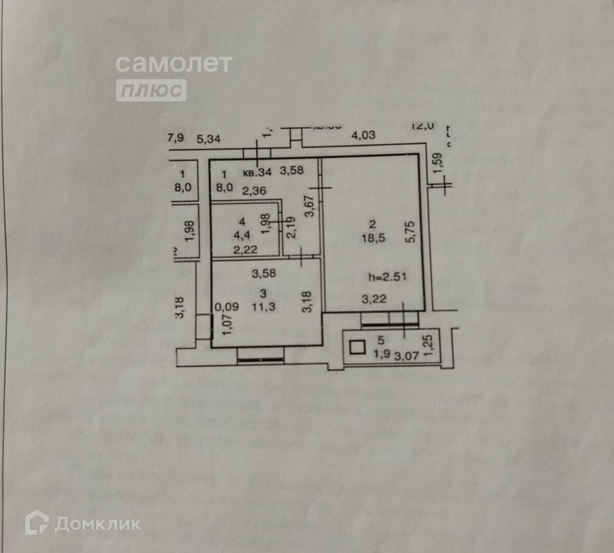 Общая площадь 42.2 м2