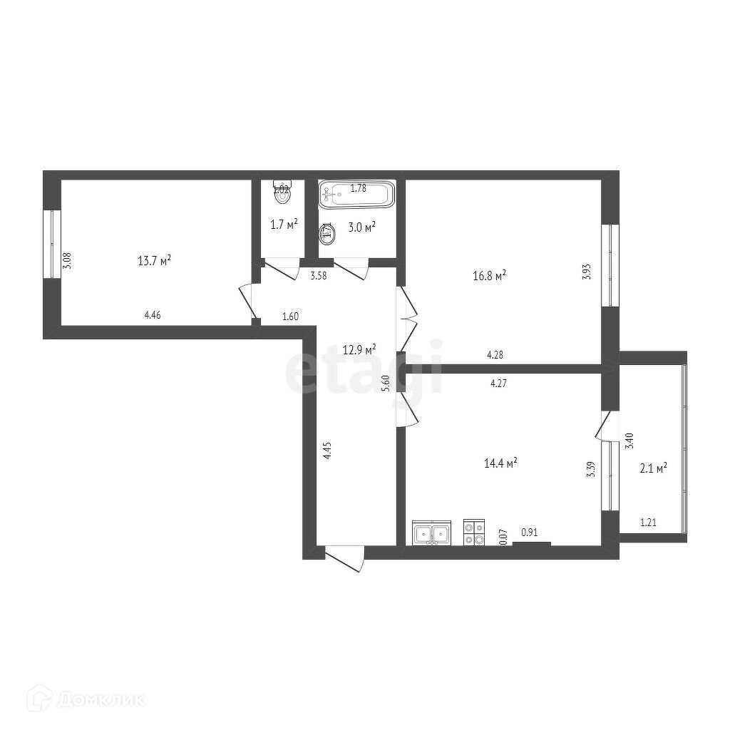 2-комнатная квартира, 62.5 м2, этаж 9 / 9, на продажу в селе Семёновка, Молодёжная улица, 14А