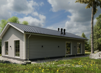 Арт. 58424111 Дом, построенный по каркасной технологии. Кухня- гостиная и две спальни. С/у совмещен. Отделка предчистовая: стены гипсокартон; выполнена разводка электрики по дому; выведены водопроводные и канализационные трубы; Дом - 70,5 кв. м. Внешняя отделка - хауберк. Подключение к коммуникациям в стоимость не входят. Подходит под сельскую ипотек... |