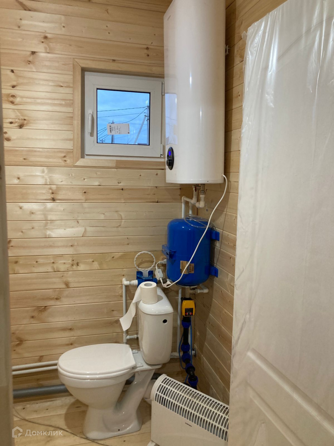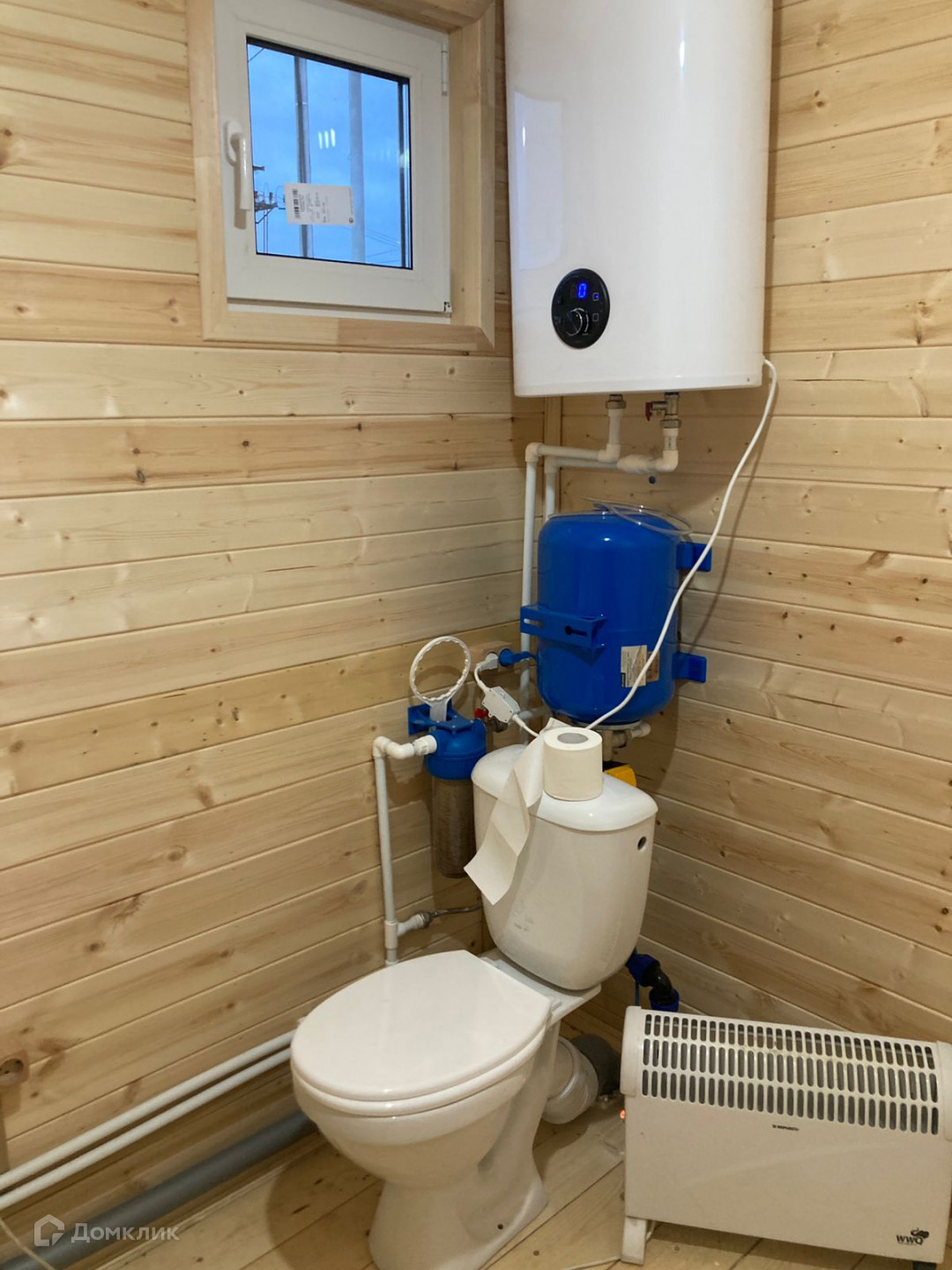 Санузел совмещен: установлены гидроаккумулятор, бойлер, унитаз, раковина, смеситель.