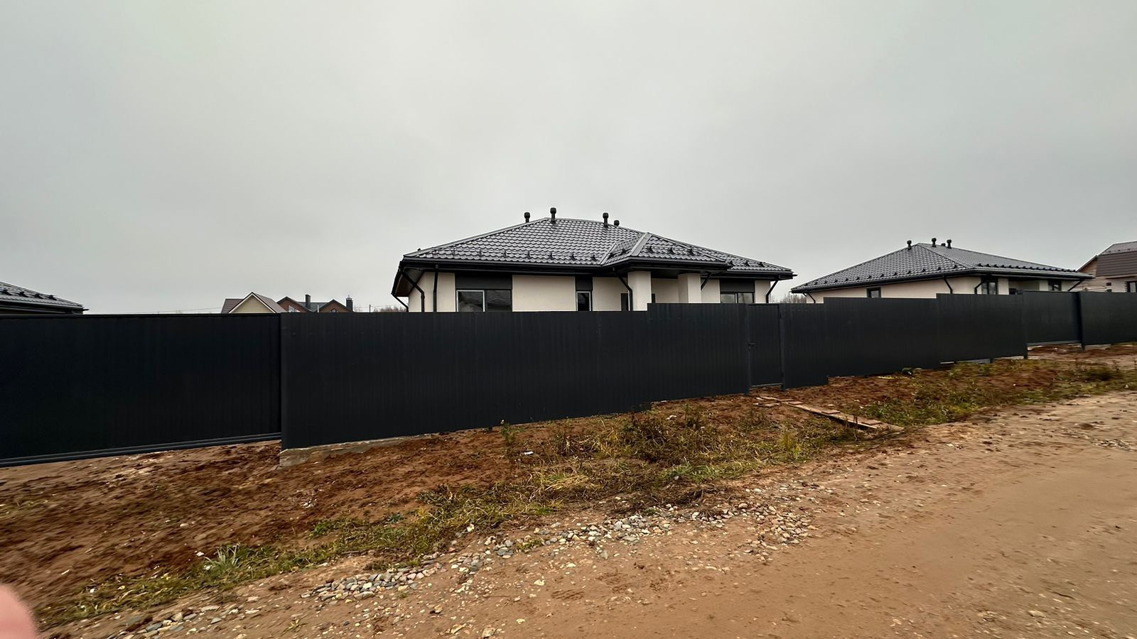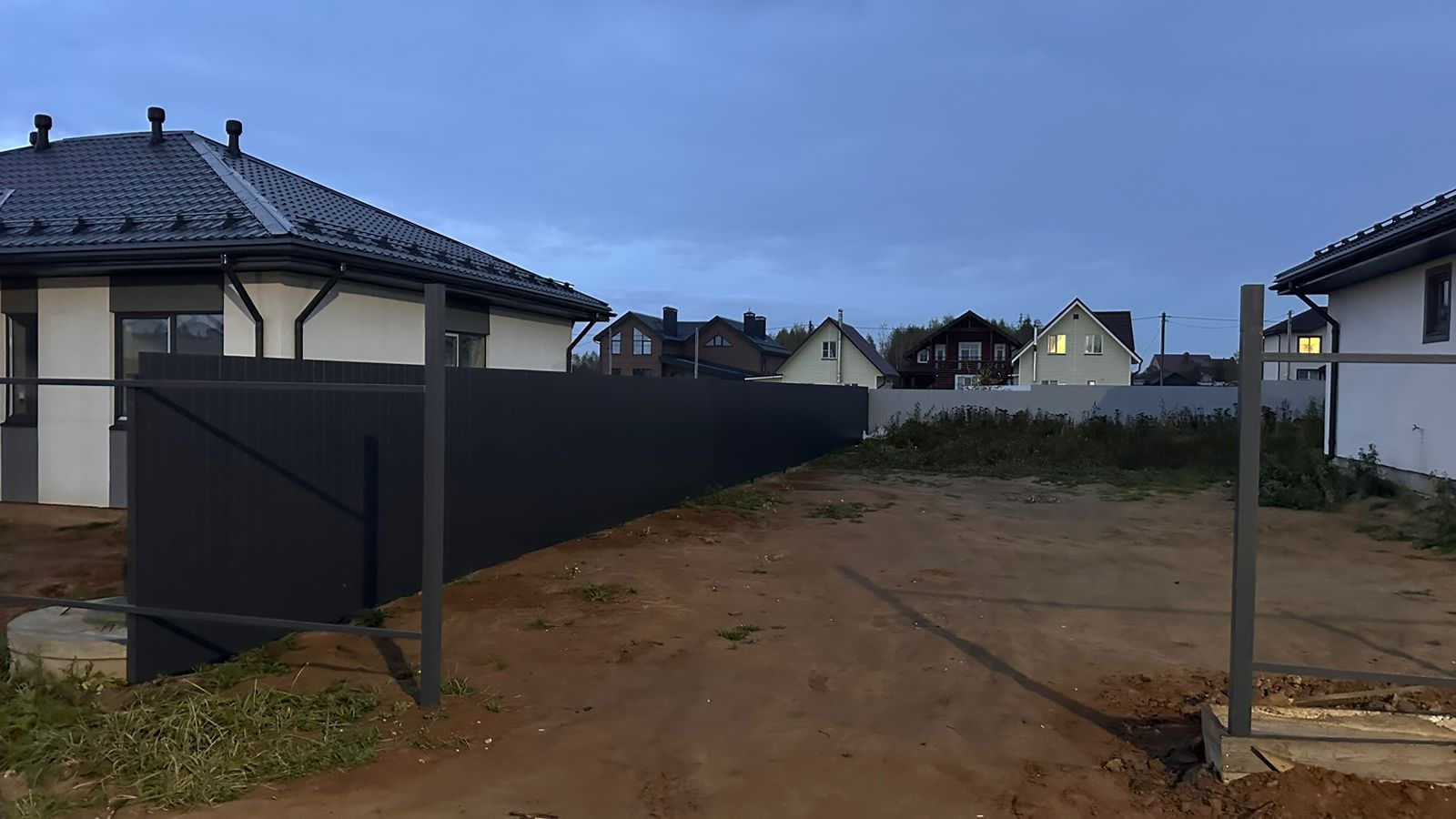 8) Установлены откатные ворота с  калиткой. Забор выполнен из профнастила Grandline С-8 толщиной 0,4мм