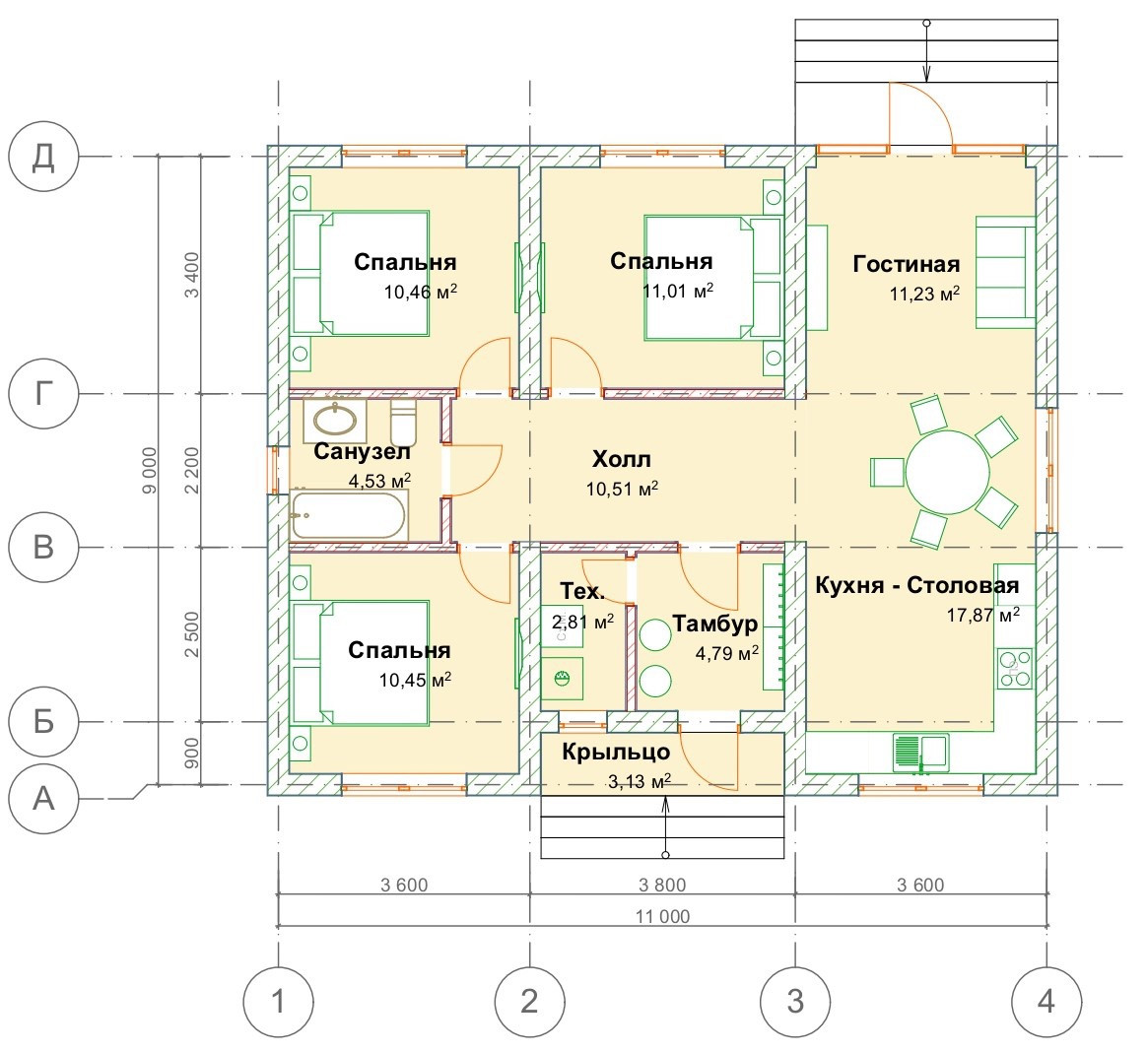 Общая площадь 96 м2
