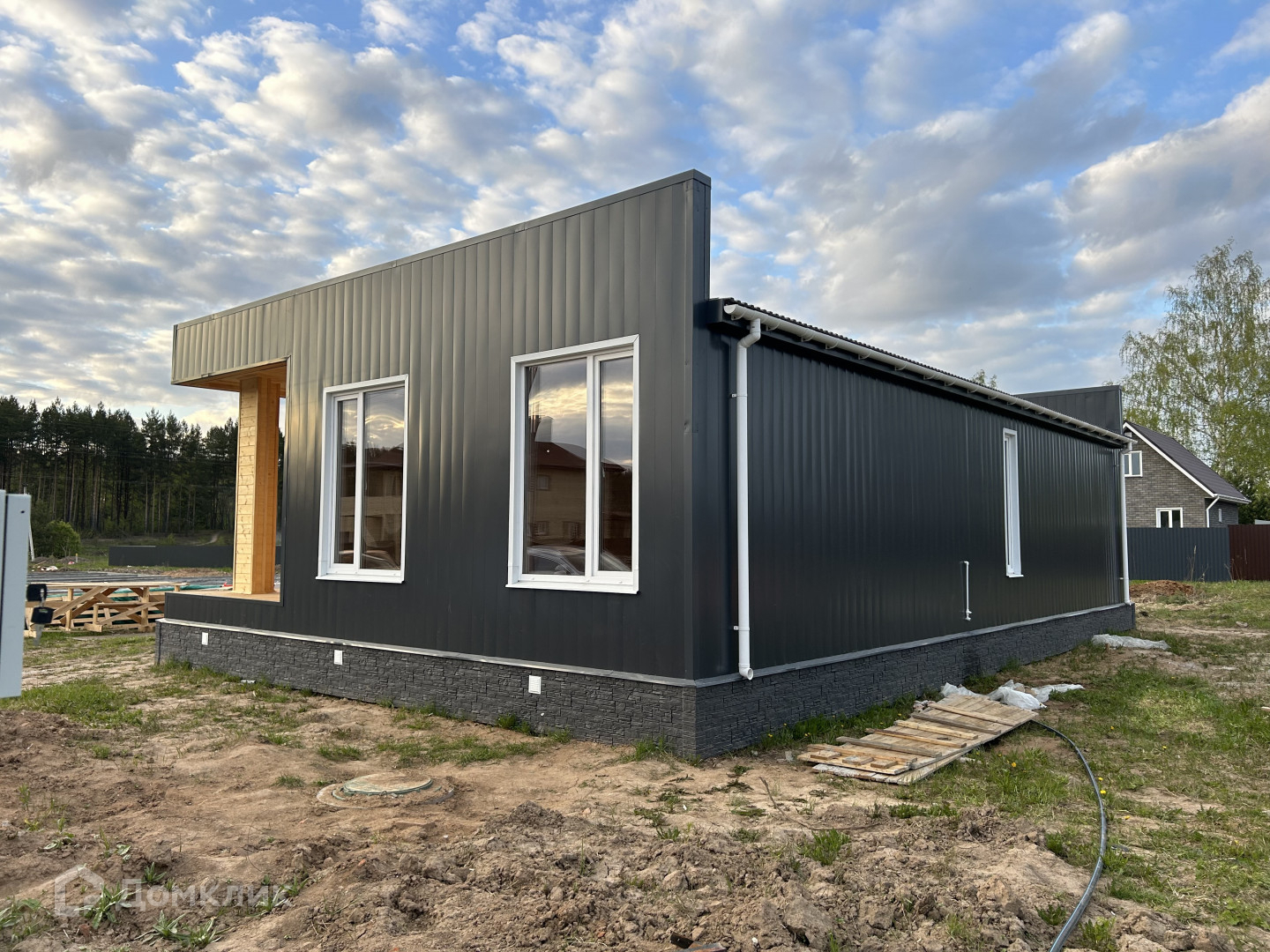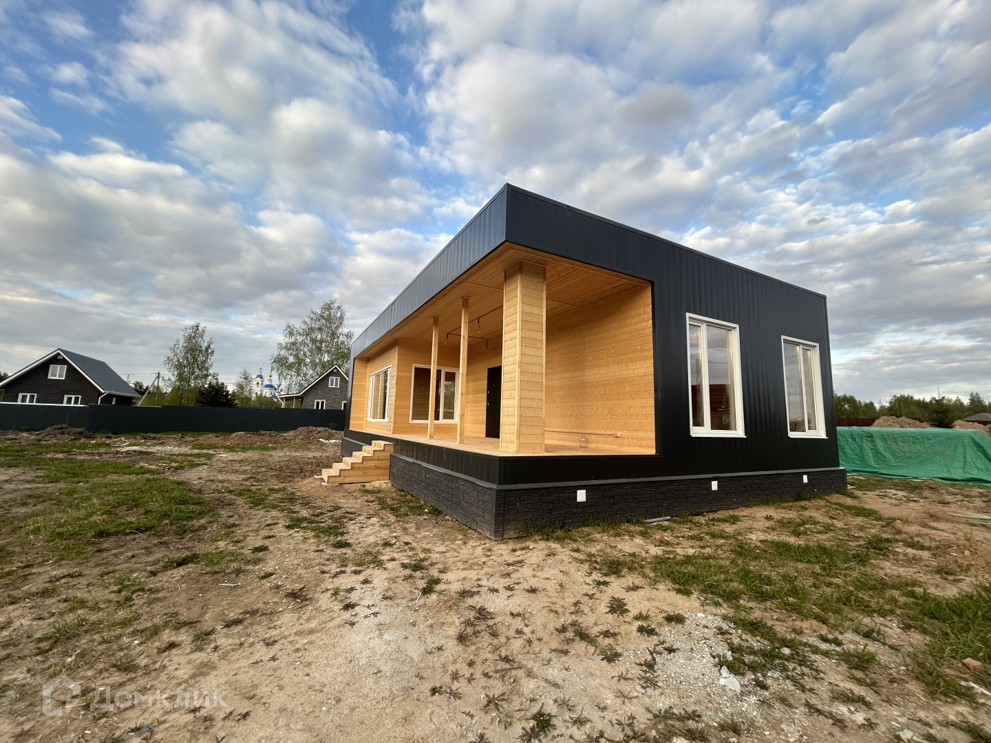 Арт. 65919586 Современный загородный дом с односкатной крышей. Отличный вариант как для постоянного проживания, так и для проведения выходных и праздников.