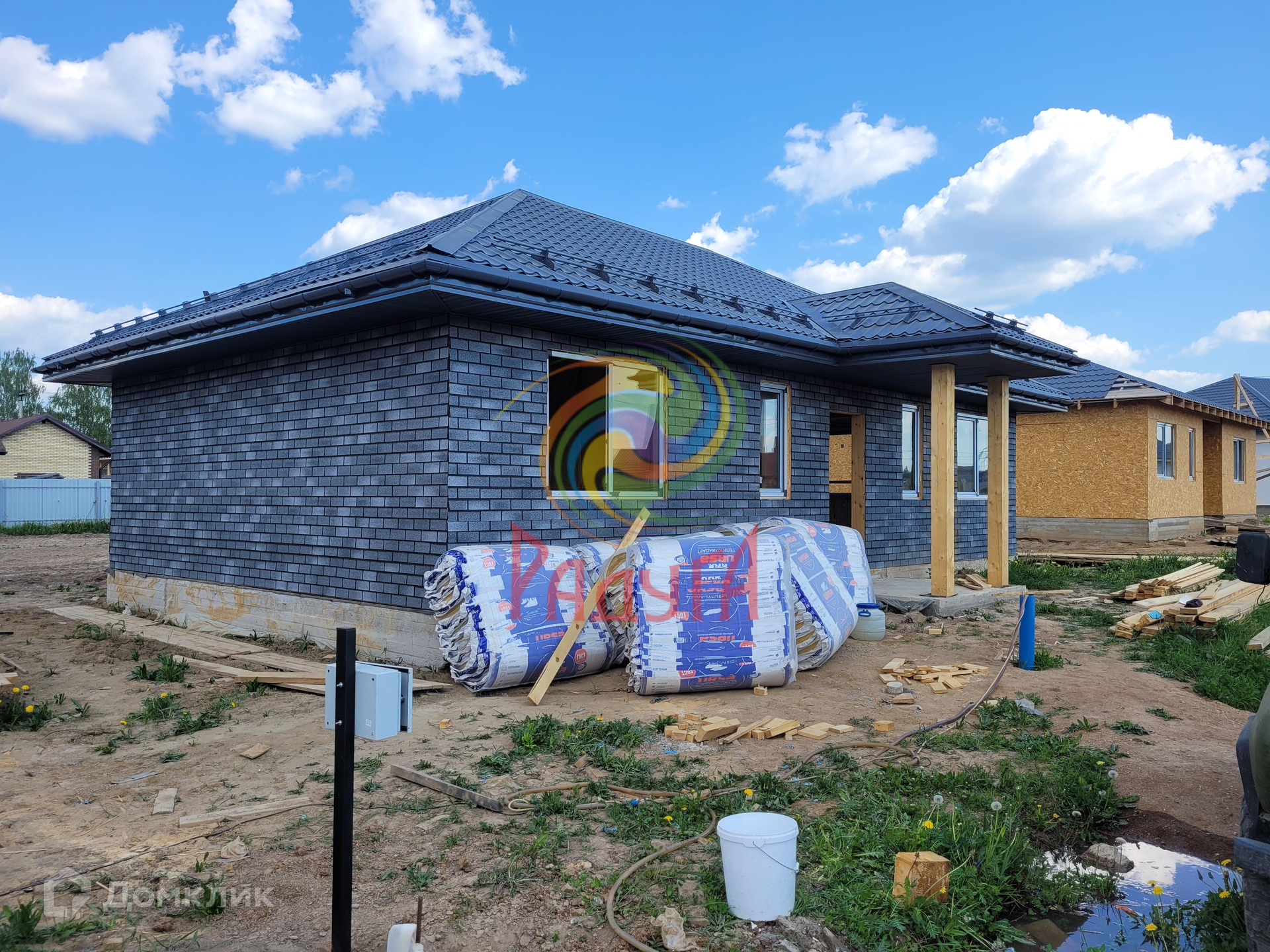 Кровля металлочерепица Grand line. Водосточная система ПВХ Docke. Подшив карниза  из ламинированных софитов. Утепление Кровли  базальтовой ватой толщиной 200мм.