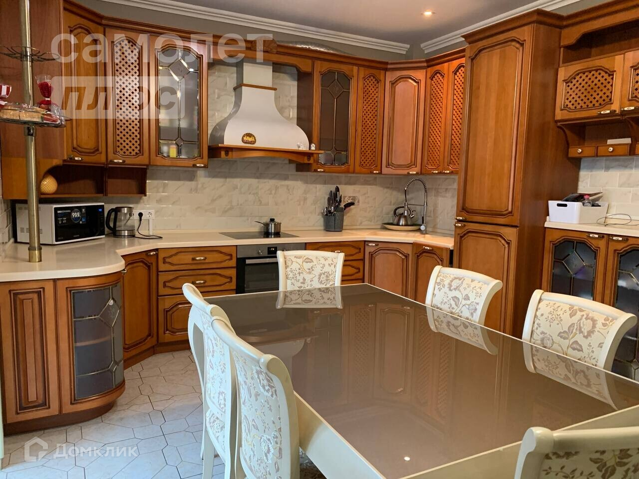 - Есть гостиная, кухня-столовая, спальня, гостевая комната, детская, гардеробная, санузлы с душевыми кабинами .