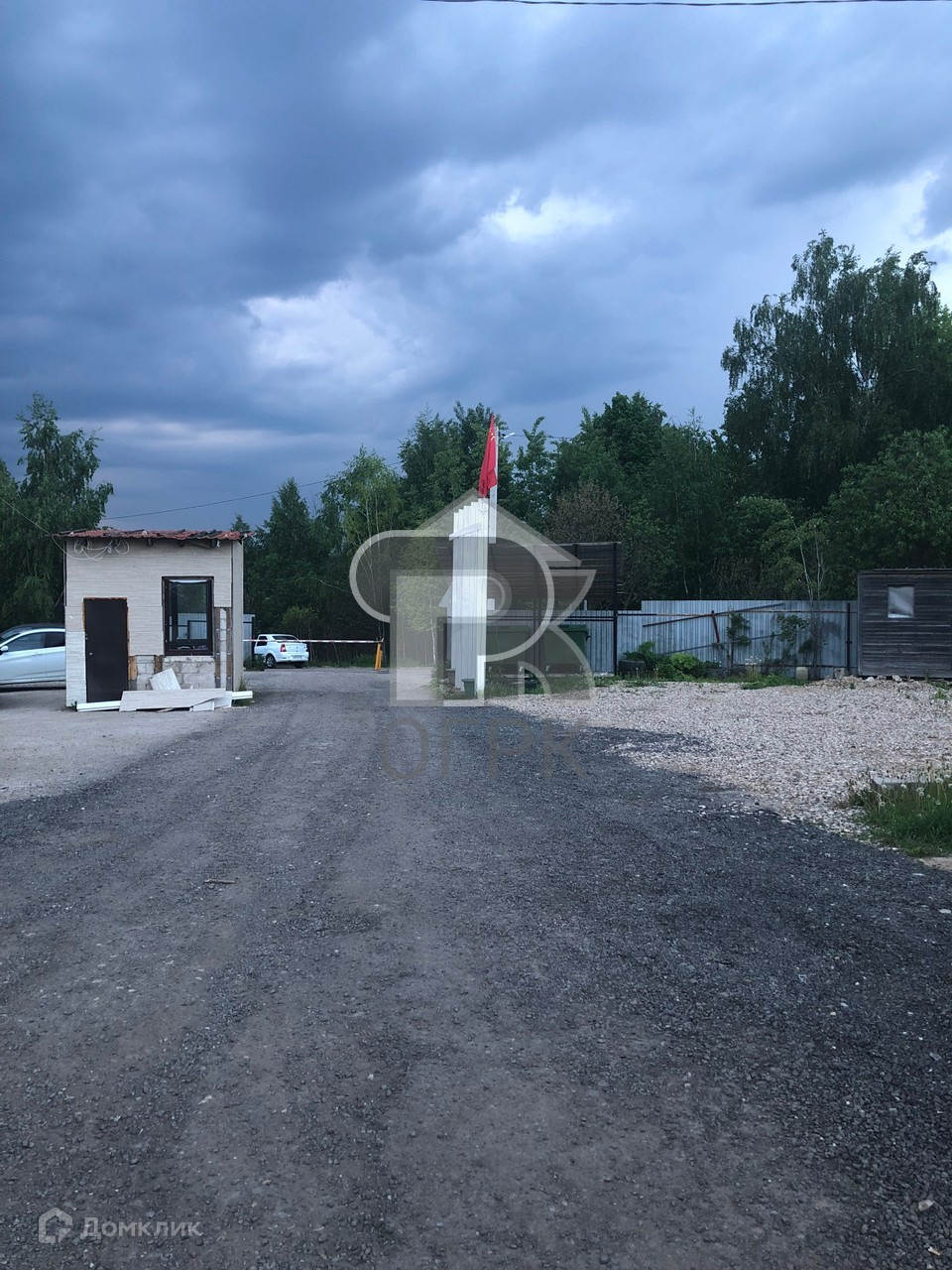 Закрытая территория коттеджного посёлка, охрана, шлагбаум с индивидуальным пультом, дорога асфальтовая, гостевая парковка.