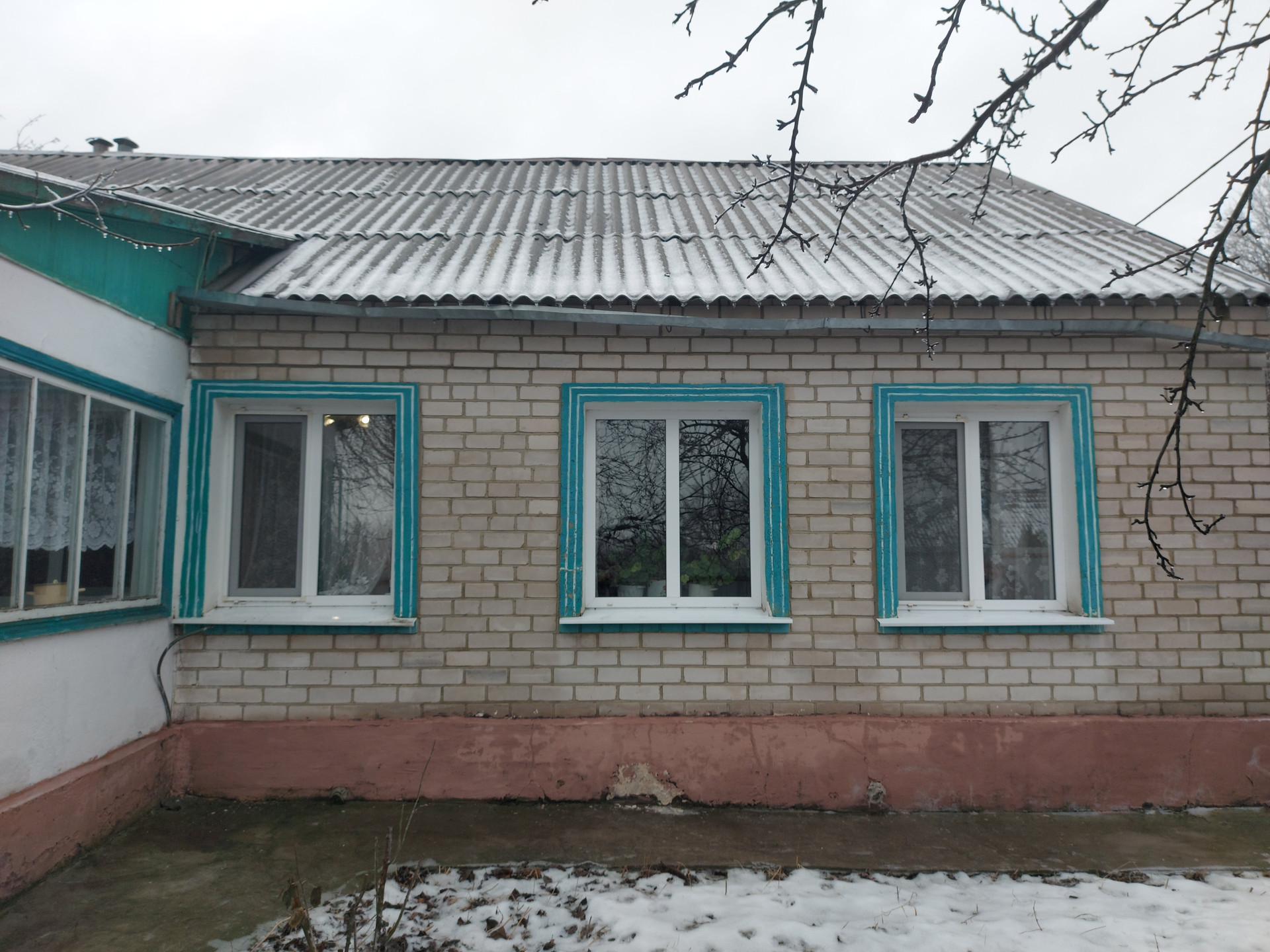 Как видно на плане : в доме три комнаты и просторная кухня, прихожая, совместный санузел, по всему дому установлены пластиковые окна, входная металлическая дверь.