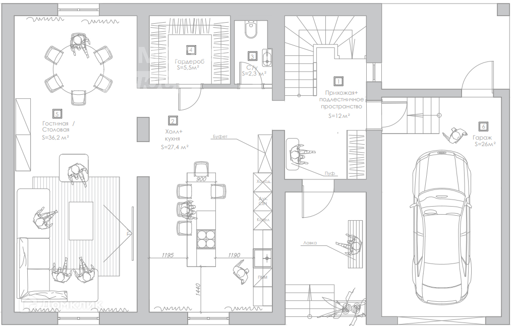 - просторная гостиная- столовая(36.2 кв. м),где вы с лёгкостью сможете разместить большое количество гостей;