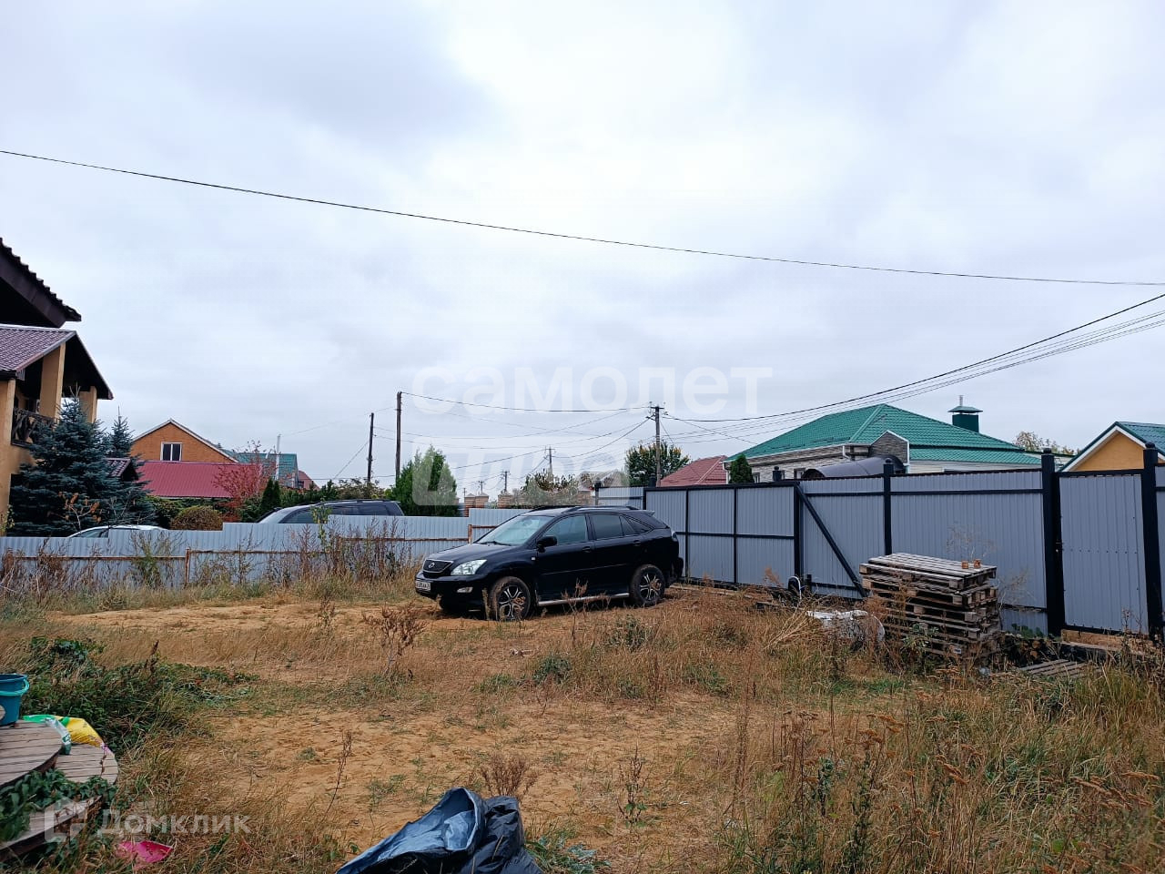 На территории сделан навес на несколько машин и собачий вольер.