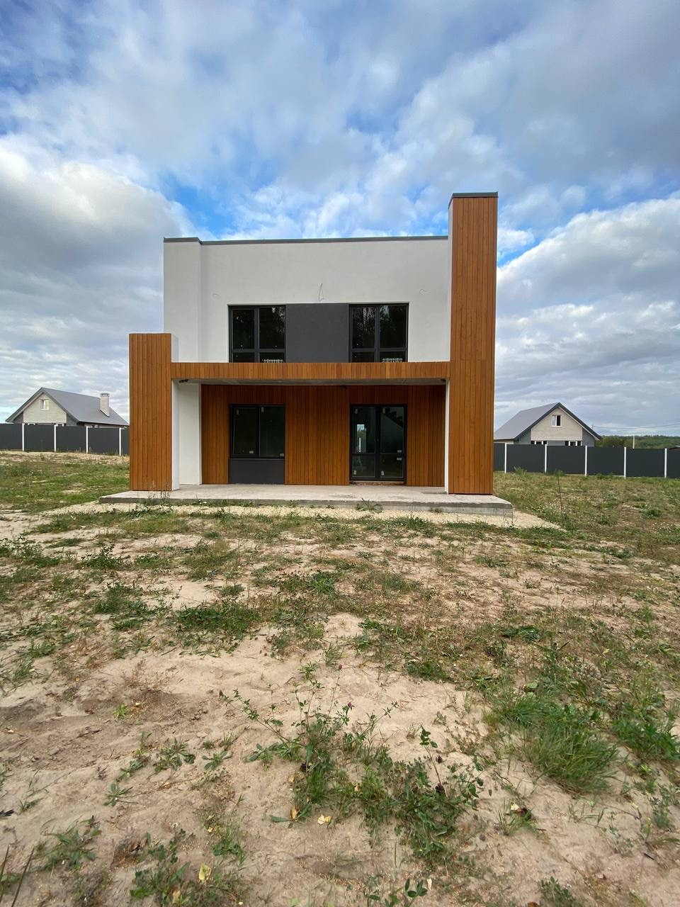 Двухэтажный дом общей площадью 176 м², с панорамным остеклением просторной кухней-гостиной с терассой, двумя санузлами, котельной, четырьмя уютными спальнями с балконом и кабинетом на участке 7 соток (ИЖС)