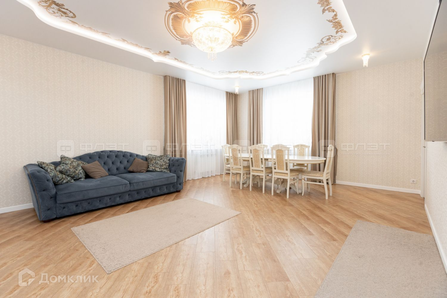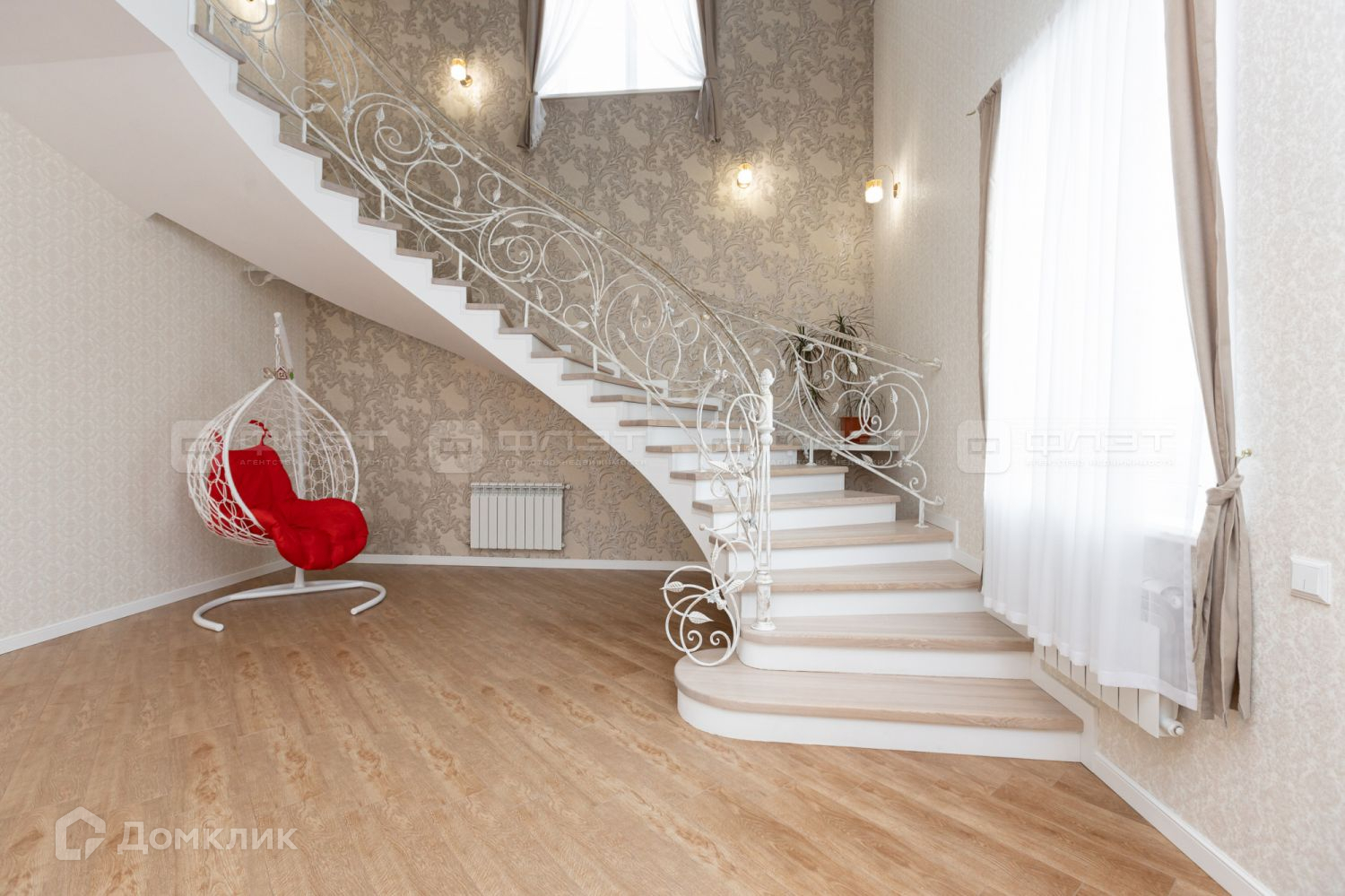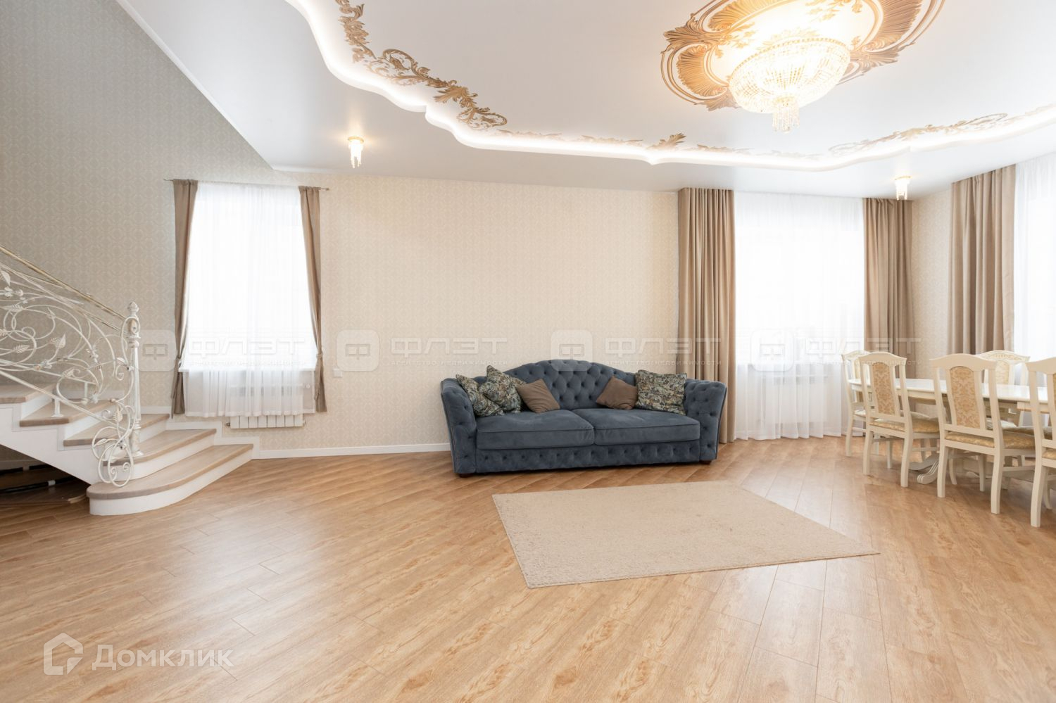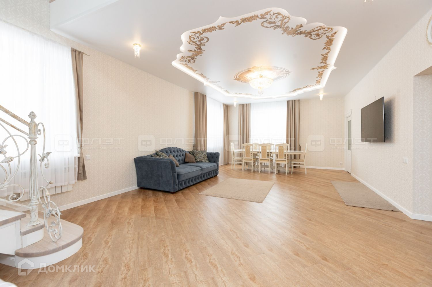 Удачная планировка, высокие потолки, большие просторные комнаты, 4 большие спальни, 2 с/у, зал с шикарной лестницей, которая придаёт изысканность интерьеру, отдельная кухня.