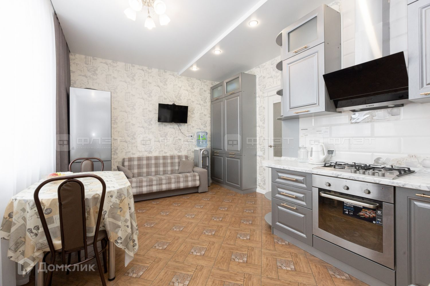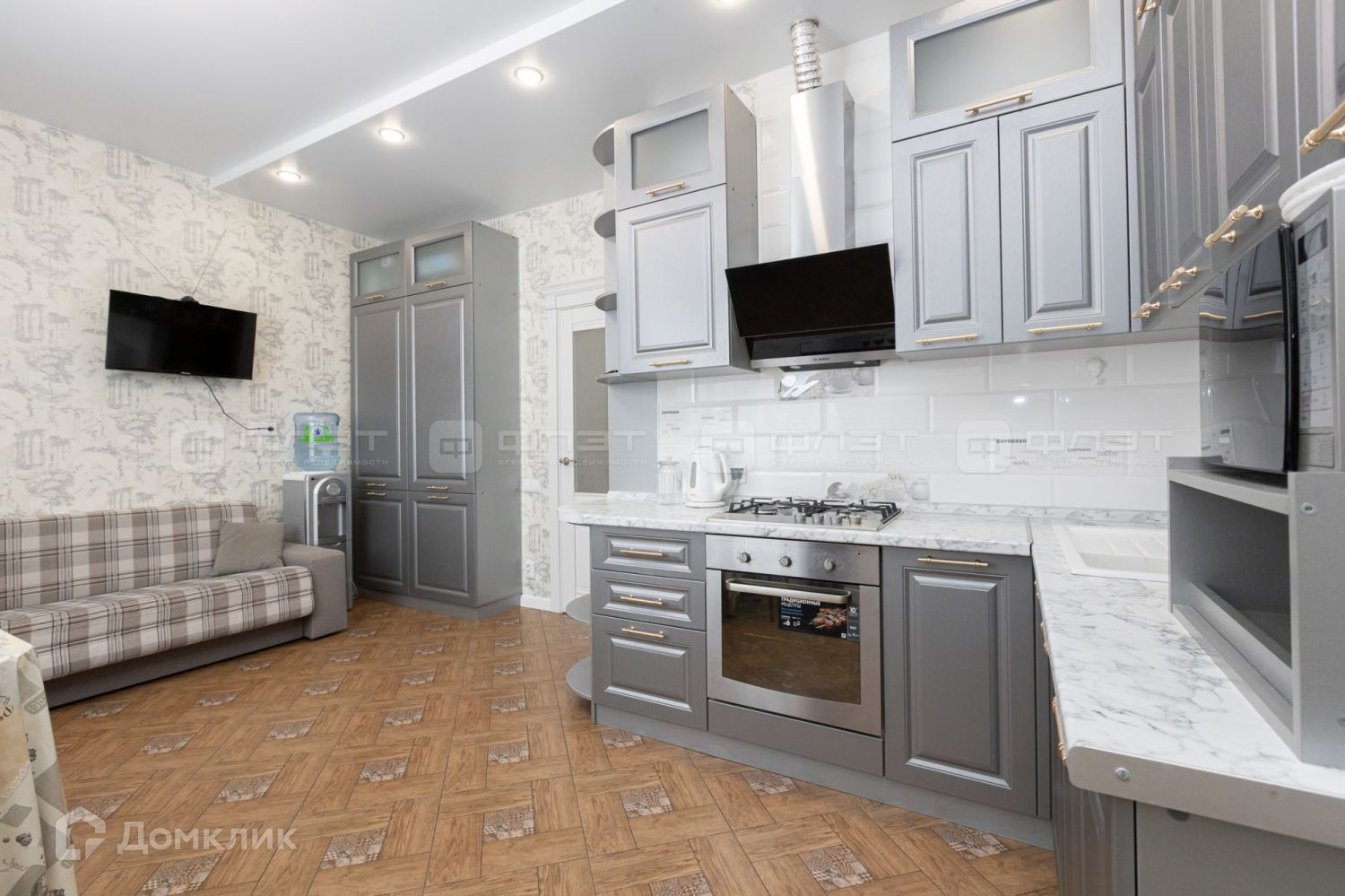 В доме выполнен дизайнерский ремонт, на полу выложен экологически чистая плитка из белой глины, тканевые натяжные потолки, качественные межкомнатные двери. Остаётся дом со всей обстановкой, техникой, мебелью, элементами интерьера (люстры, светильники, шторы).