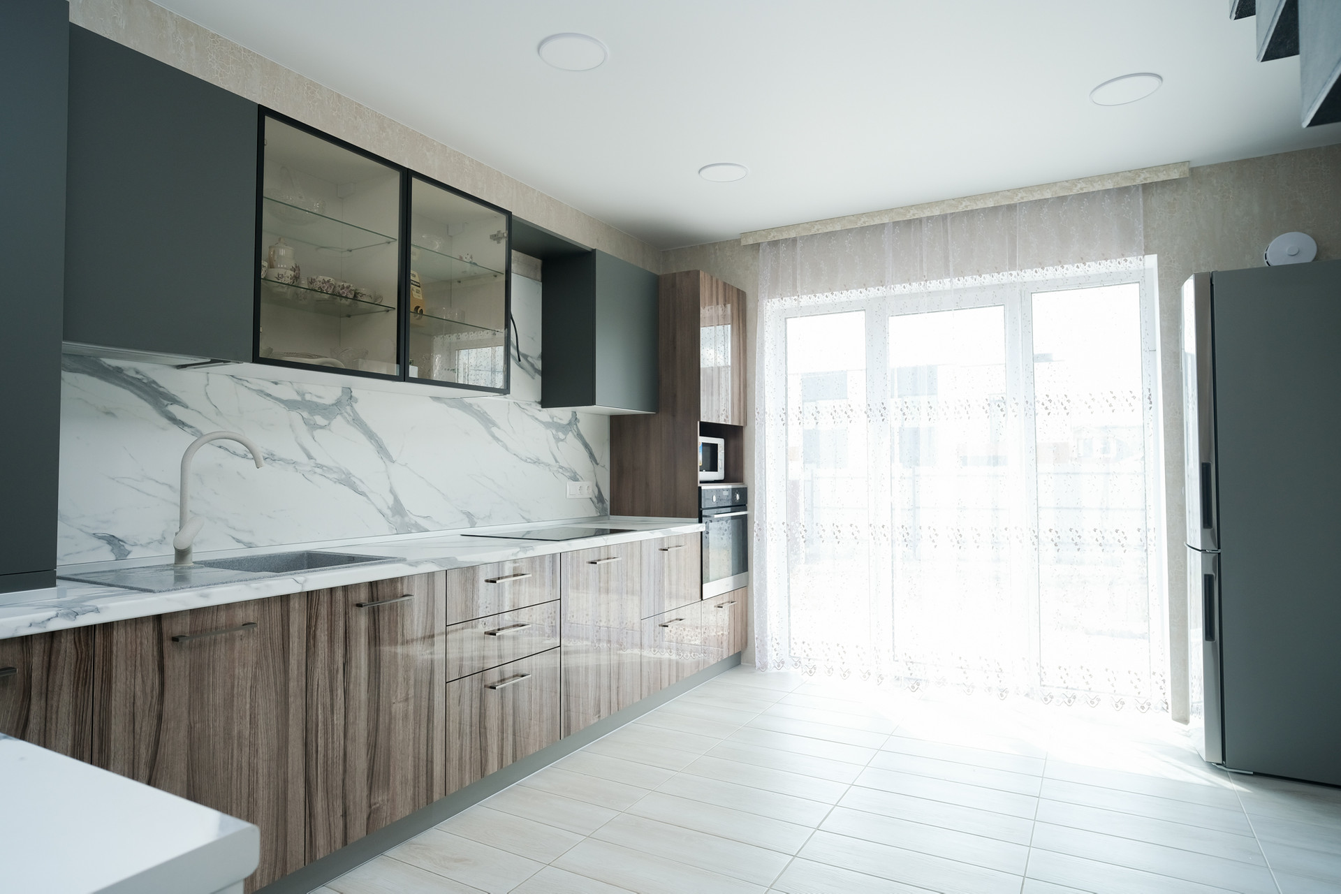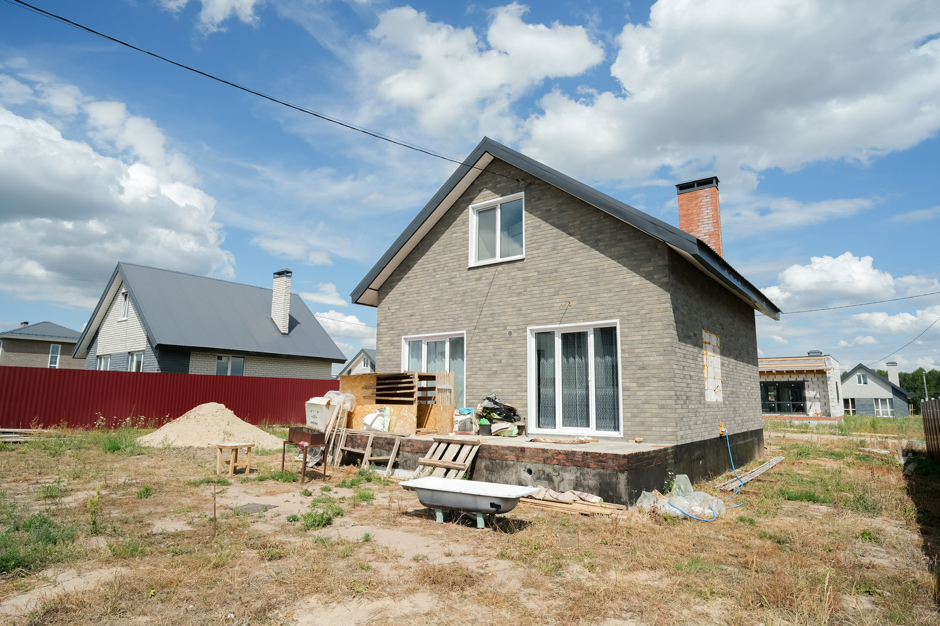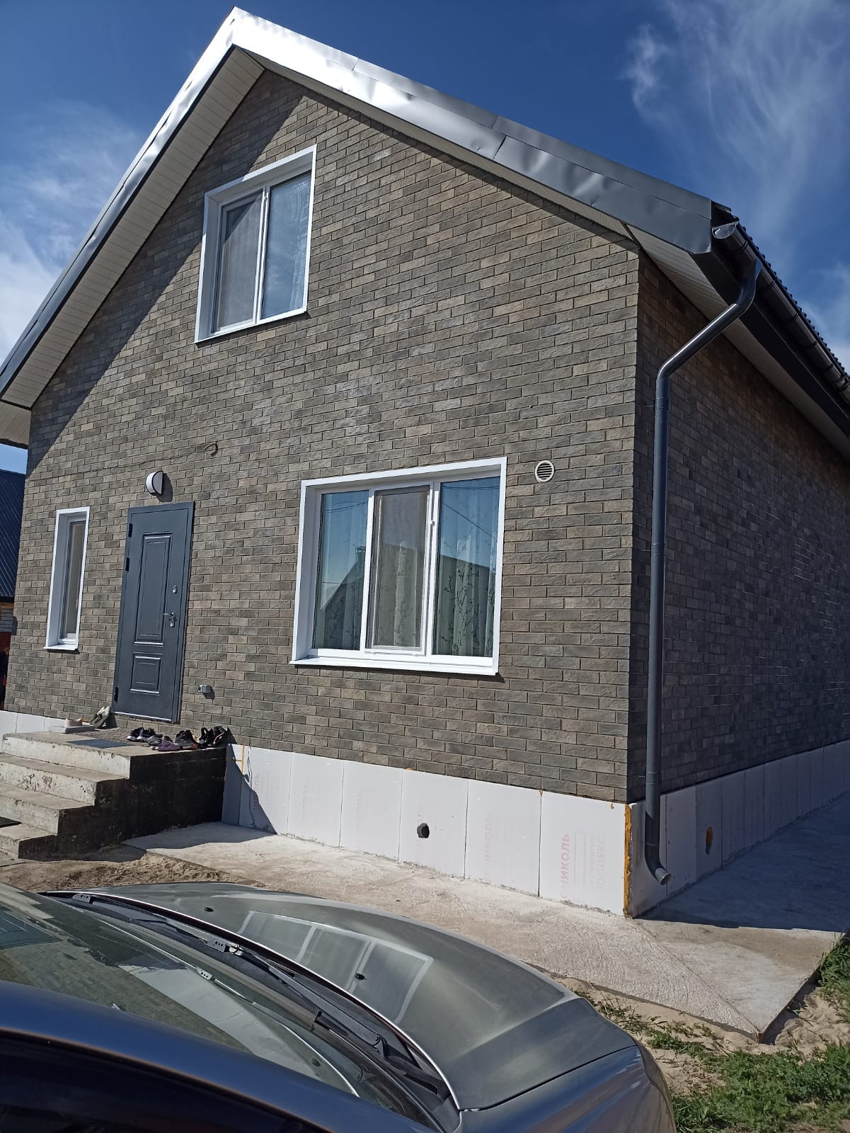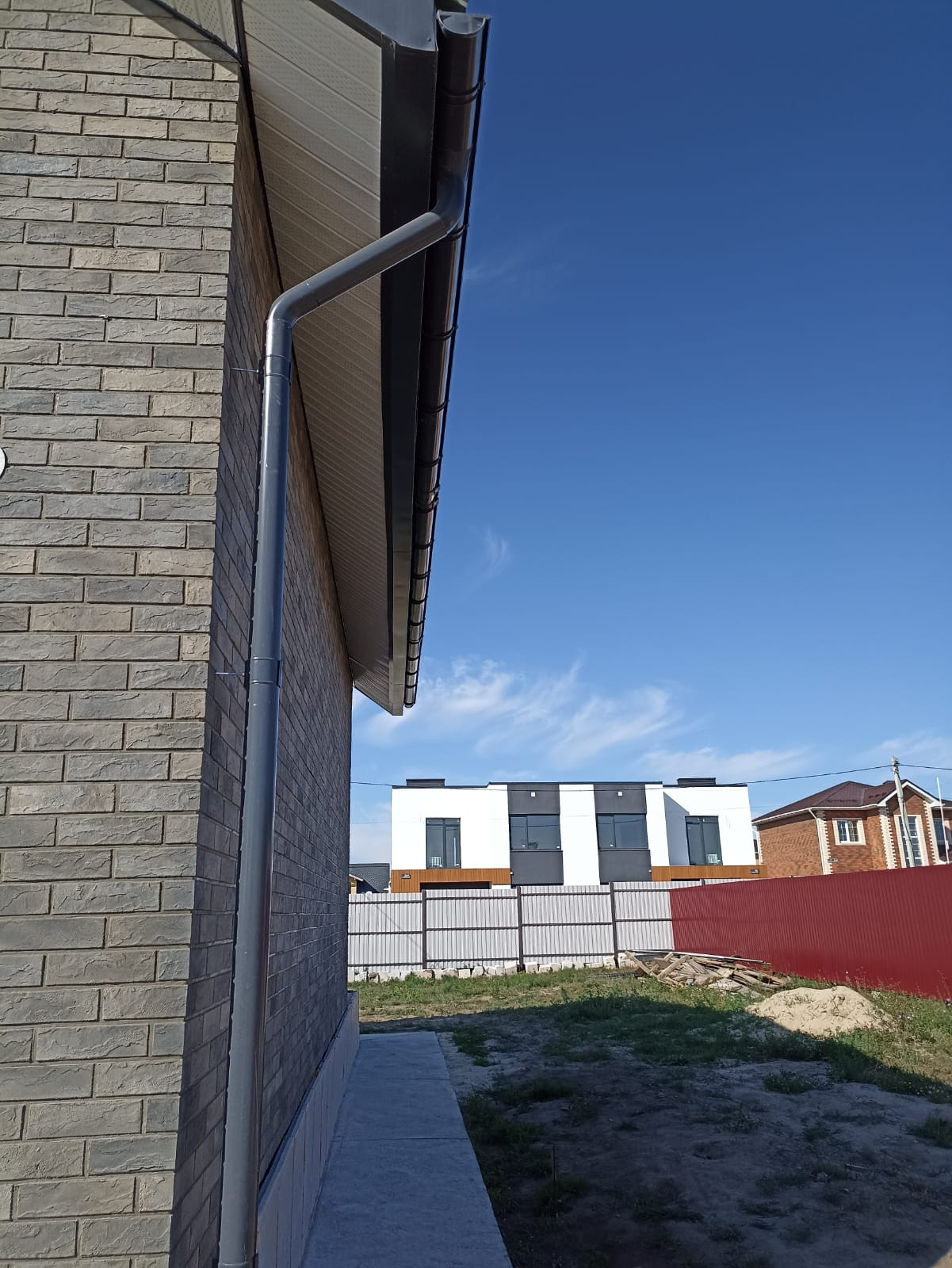 Участок ровный, прямоугольной формы, 20*30 метров. С тех сторон огорожен 2х метровым крашенным профлистом, что сэкономит ваш бюджет минимум на 200 т.р. Так же по периметру дома залита отмостка и установлены водостоки. Залита и подготовлена плита для терассы. На нее два выхода. Один из гостинной, второй из кухни.
