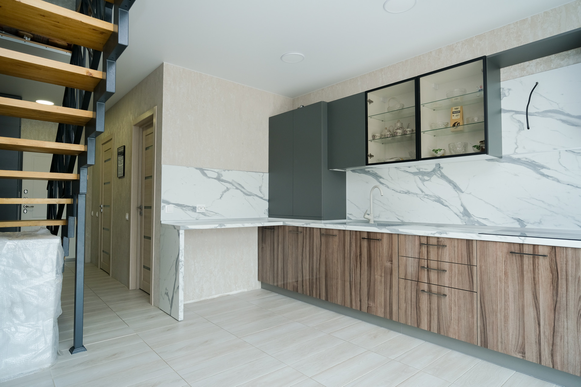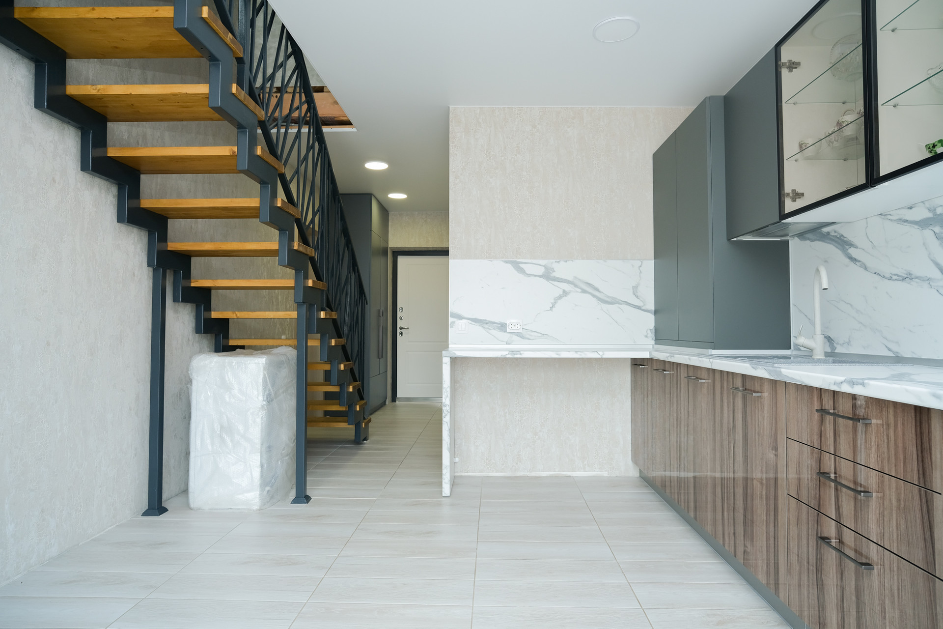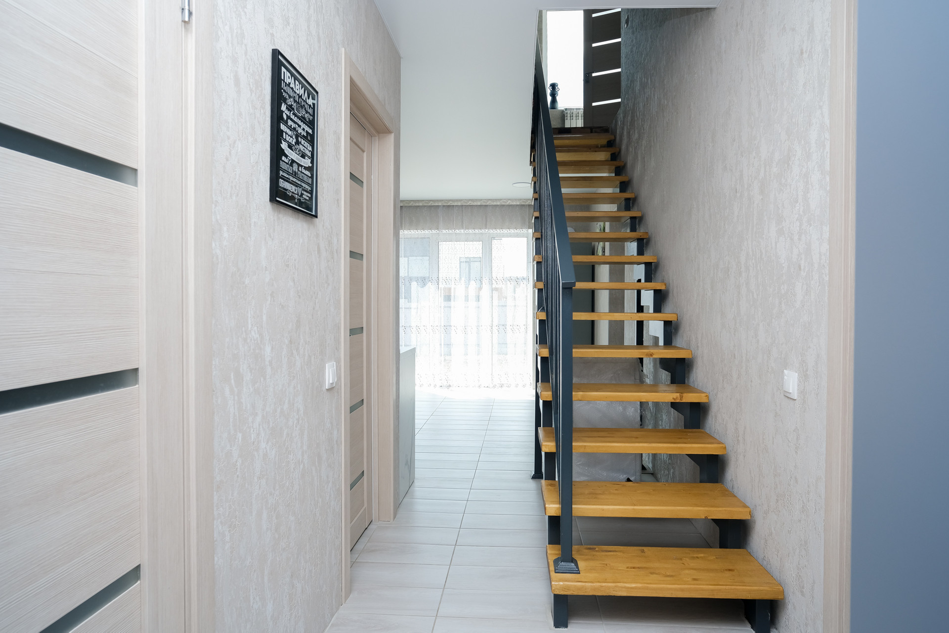 По всему первому этажу разведен теплый пол. Установлен одноконтурный котел отопления. На второй этаж установлена металлическая лестница, обшитая деревянными ступенями. На кухне установлен строенный кухонный гарнитур, который останется новым хозяевам дома. На втором этаже так же встроенная система хранения. В одной из комнат на втором этаже мансардное окно. Подключено кабельное тв и проводной интернет с отличной скоростью, что очень удобно для удаленной работы.