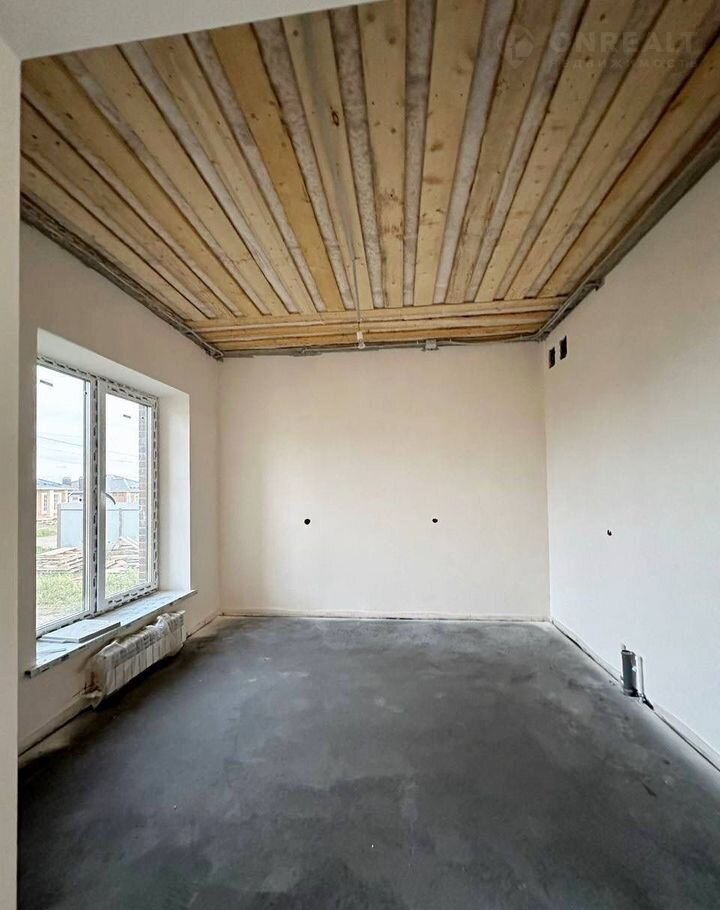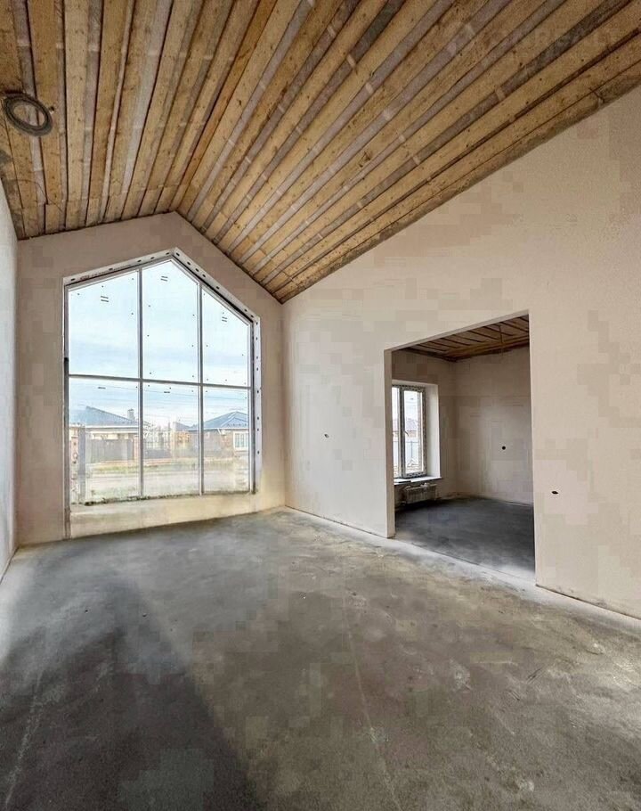 В предчистовой отделке (штукатурка стен под обои, стяжка пола по уровню, электропроводка разведена по всему дому, теплые полы, радиаторы, двухконтурный газовый котел)