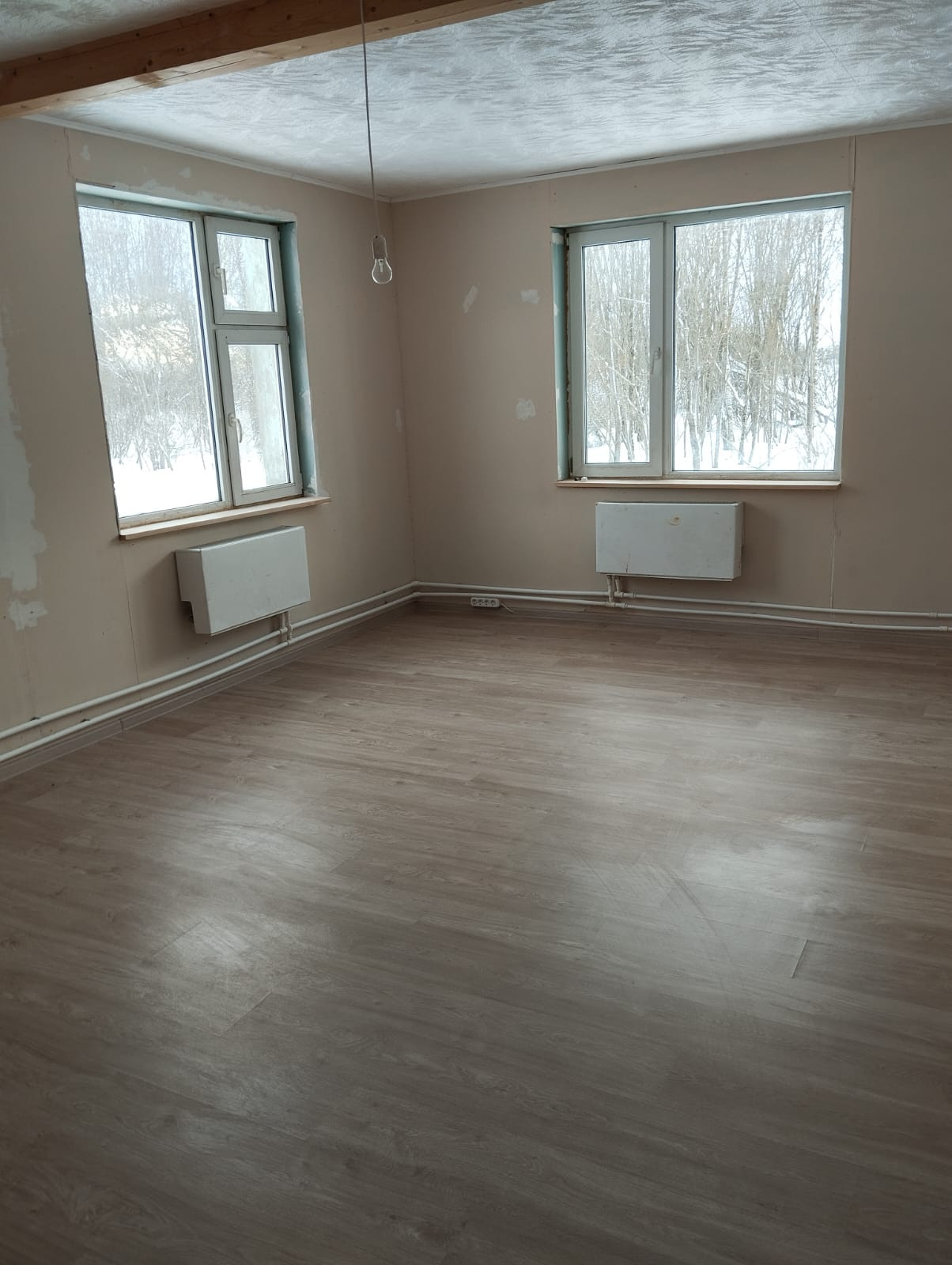 Продается дом 70 м2 на участке 22 сотки, но участок можно увеличить и прилично, есть куда расширяться. Рядом пруд, небольшой лес. Стоит на окраине, поэтому очень тихо и хорошо. Дом на две семьи. Дом после ремонта: Пластиковые окна, на полу ламинат, стены подготовлены под поклейку. Вода горячая/холодная в доме (бойлер), туалет, душевая. Отопление электрический котел -подключено.