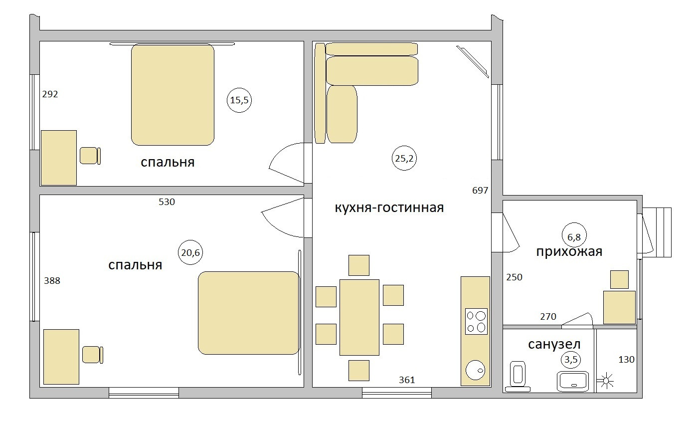 Общая площадь 70 м2