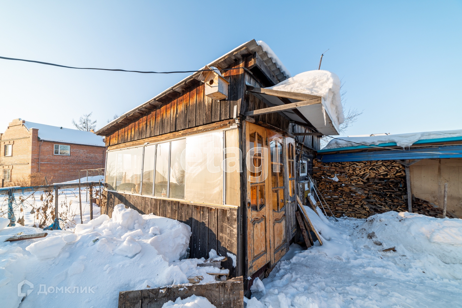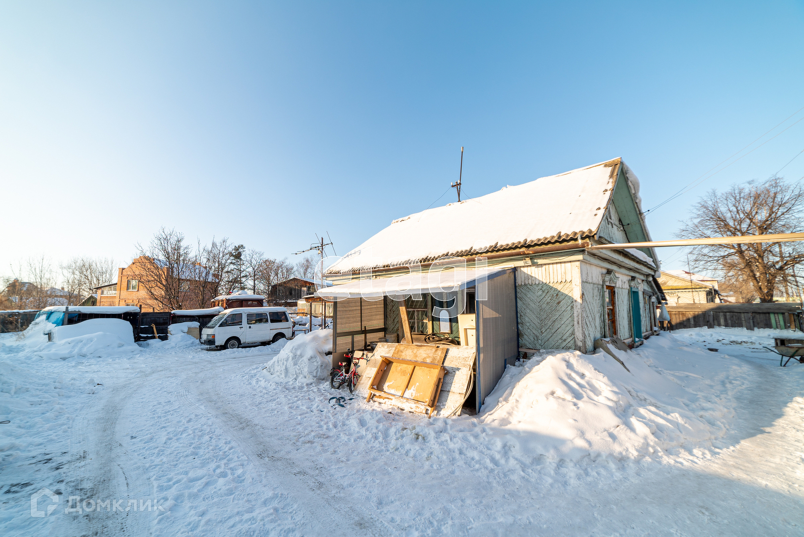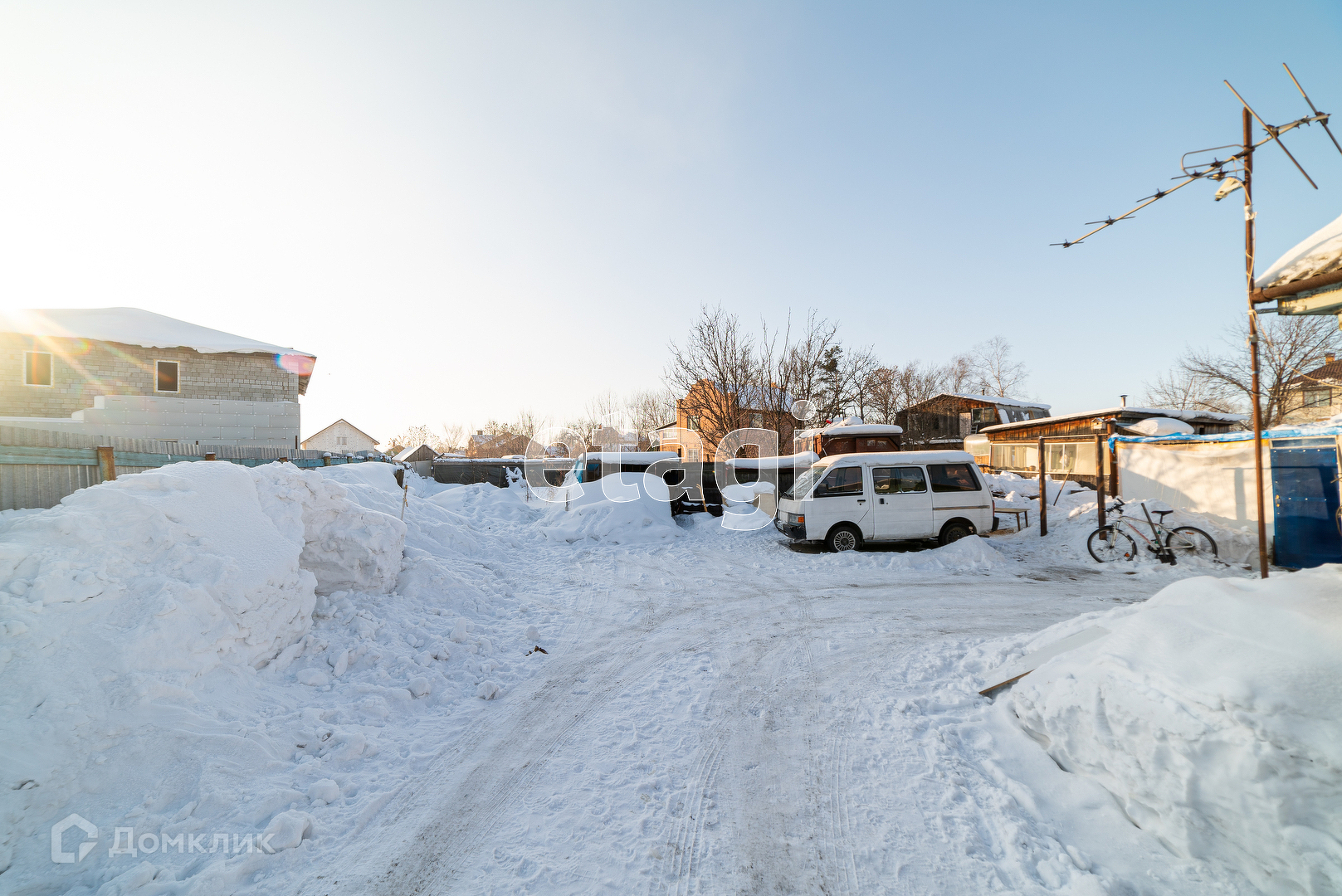 Стоят три сарая, летний душ, большой вольер для собаки, гараж для л\а из каркаса кузова грузовика, угольник, беседка и просторная баня 2008г постройки.