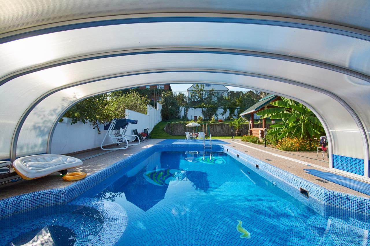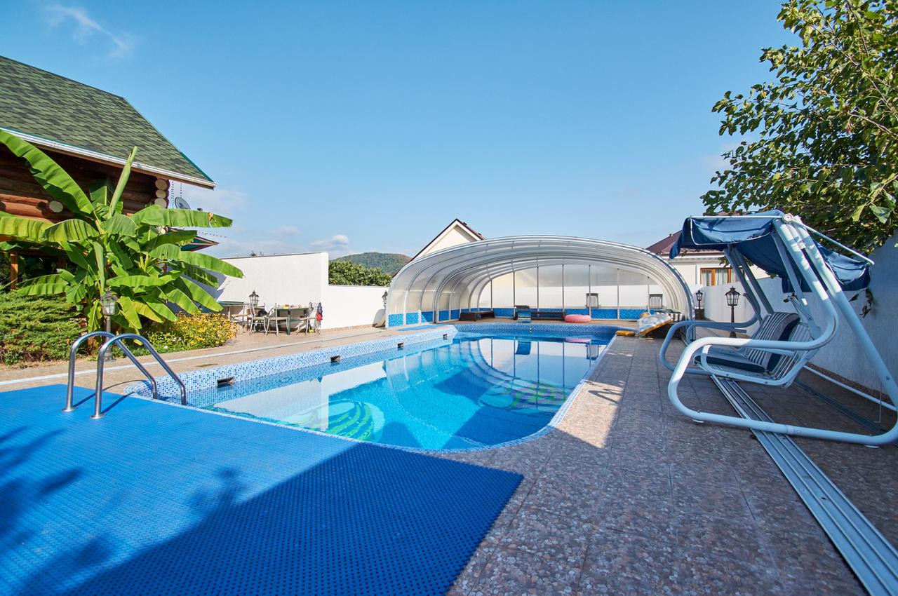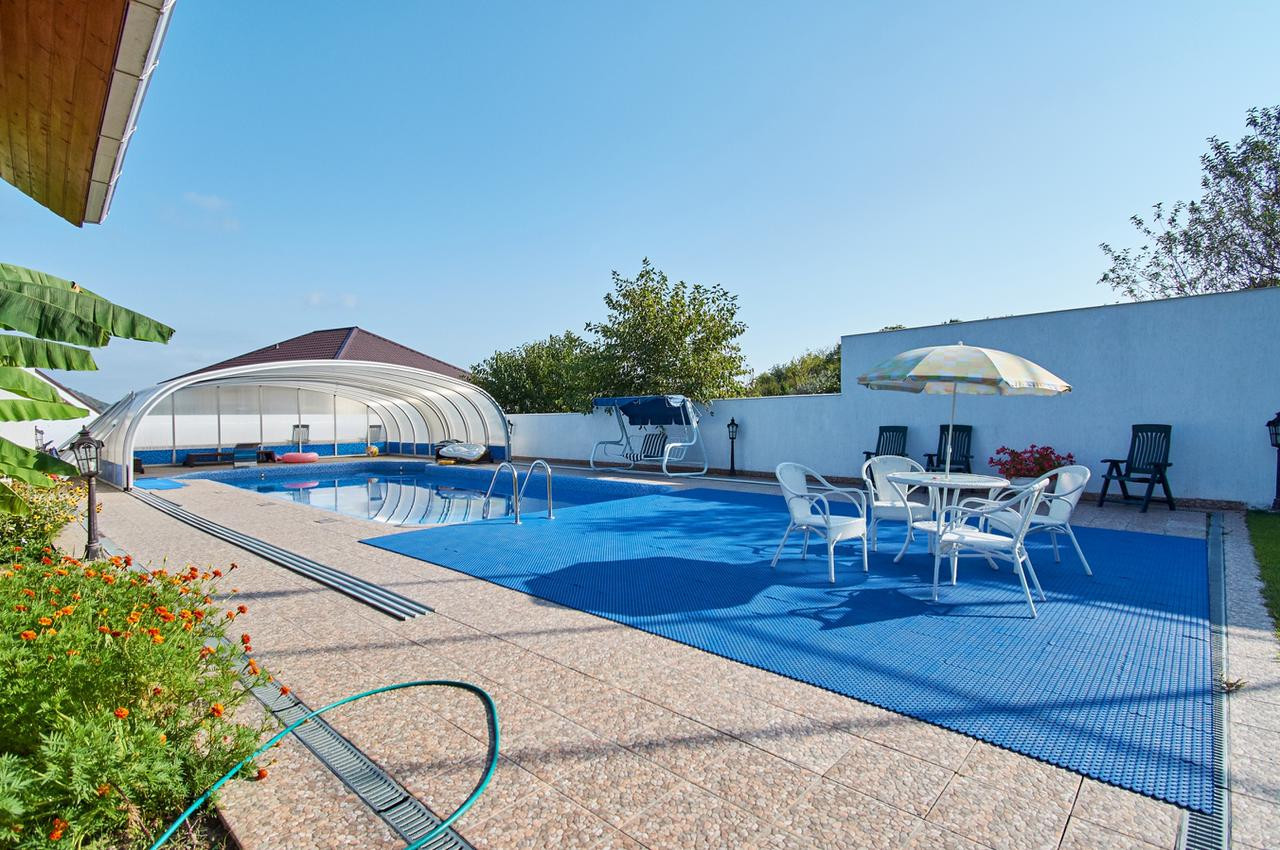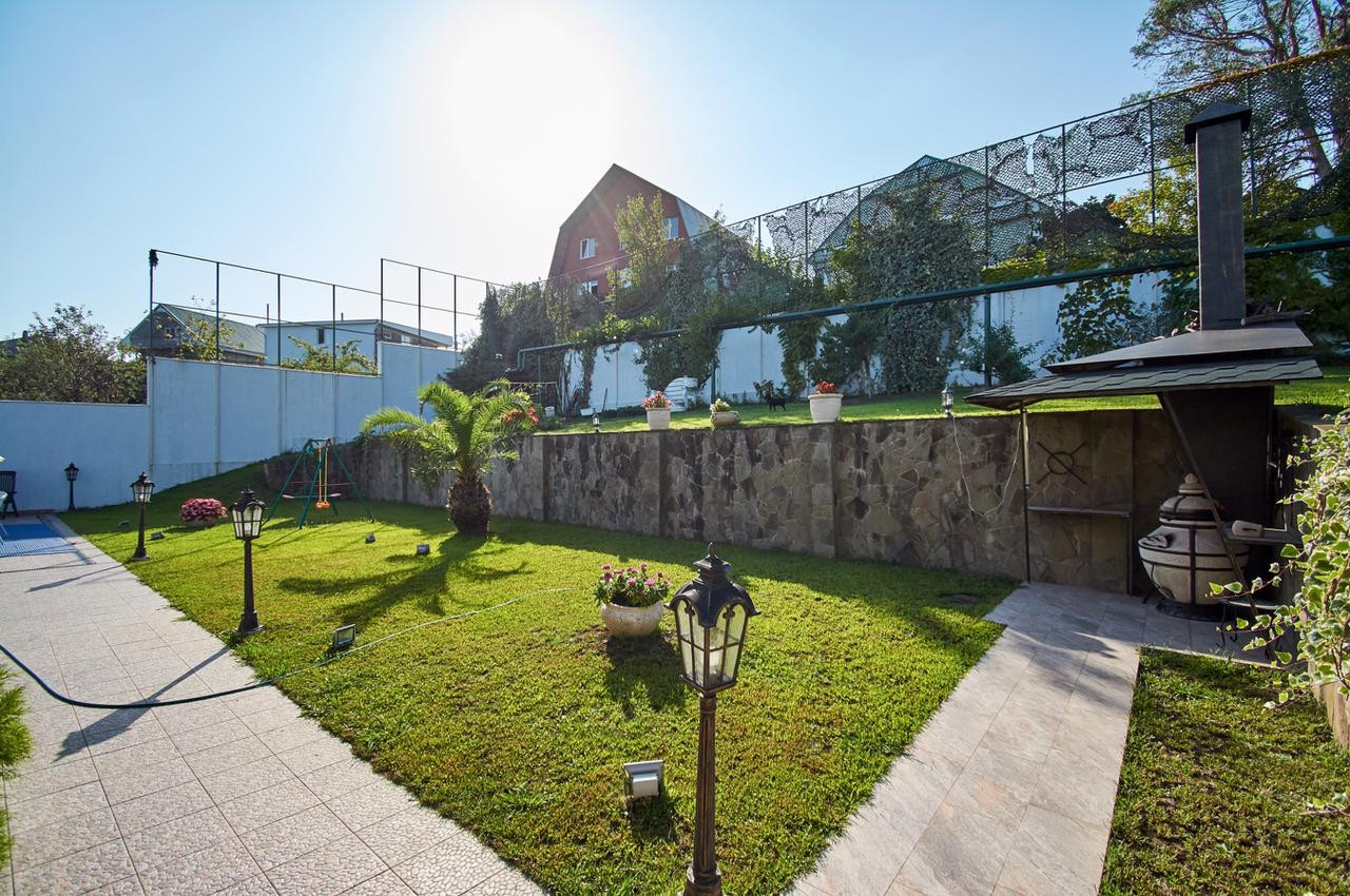 На участке выполнен ландшафтный дизайн, построен банный комплекс, установлен современный бассейн с системой фильтрации, вместительная парковка на несколько автомобилей.