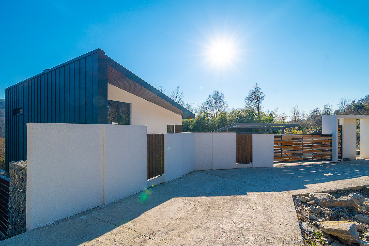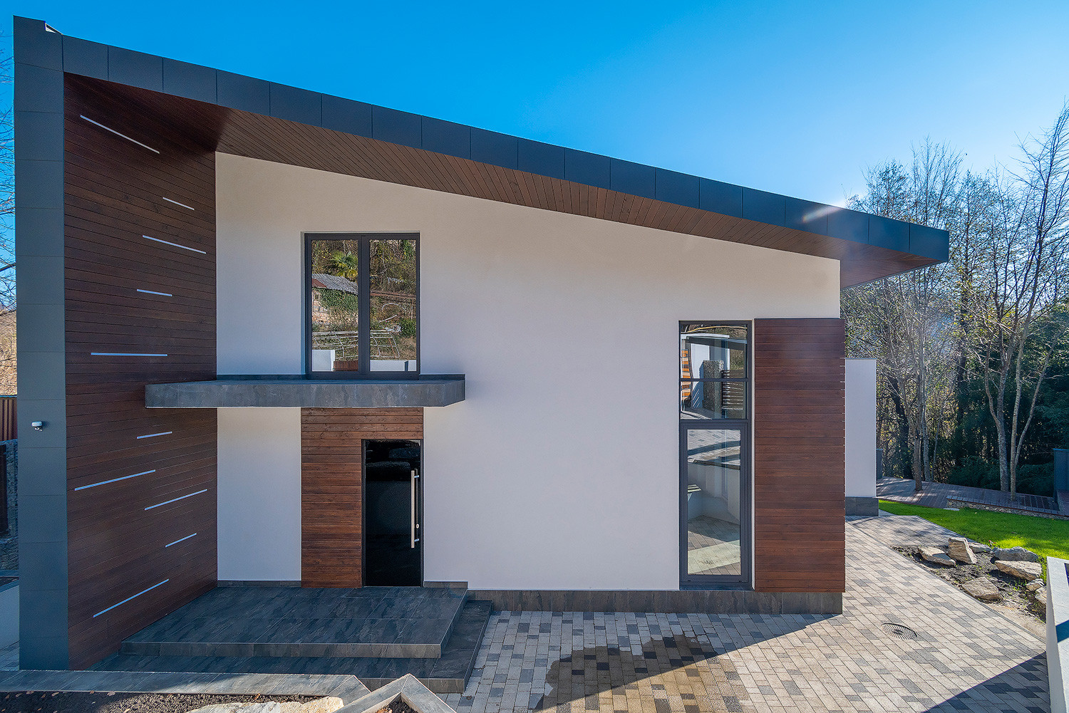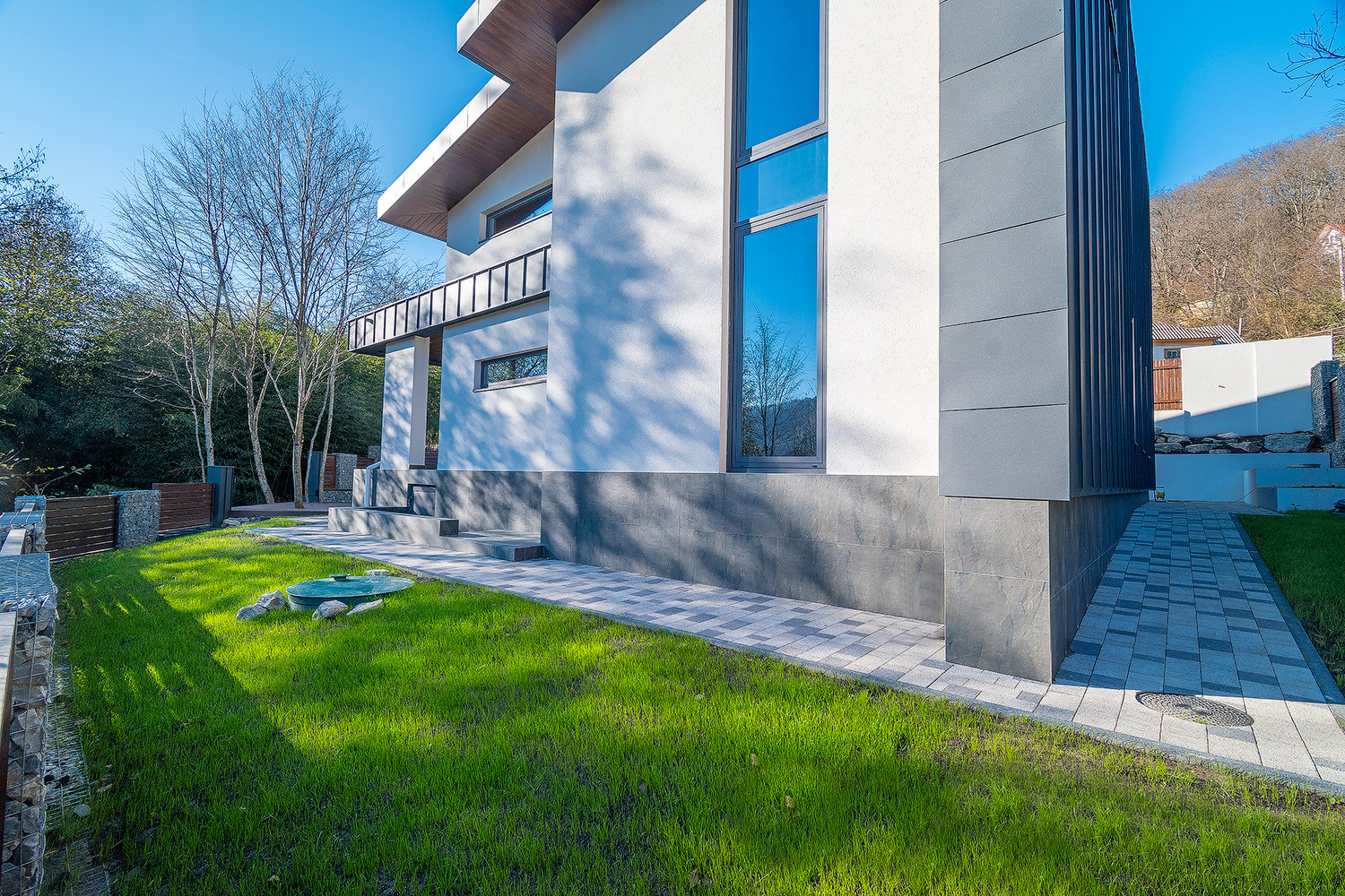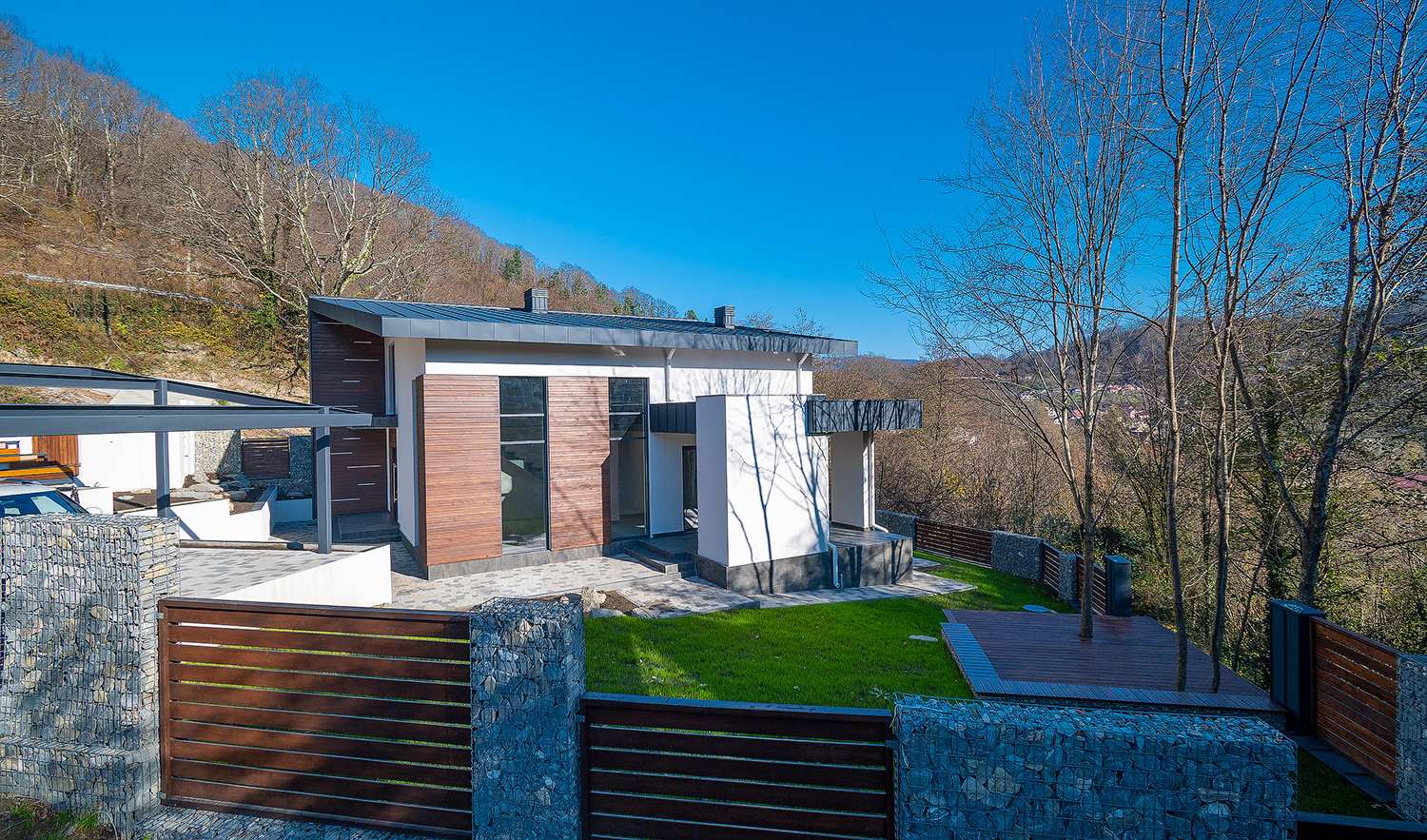 В доме имеются 3 отдельные комнаты, шикарный второй свет с высотой потолков 5-6метров, 3 санузла в т.ч. 1 личный в мастер спальне. Большие панорамные окна из алюминиевого профиля.