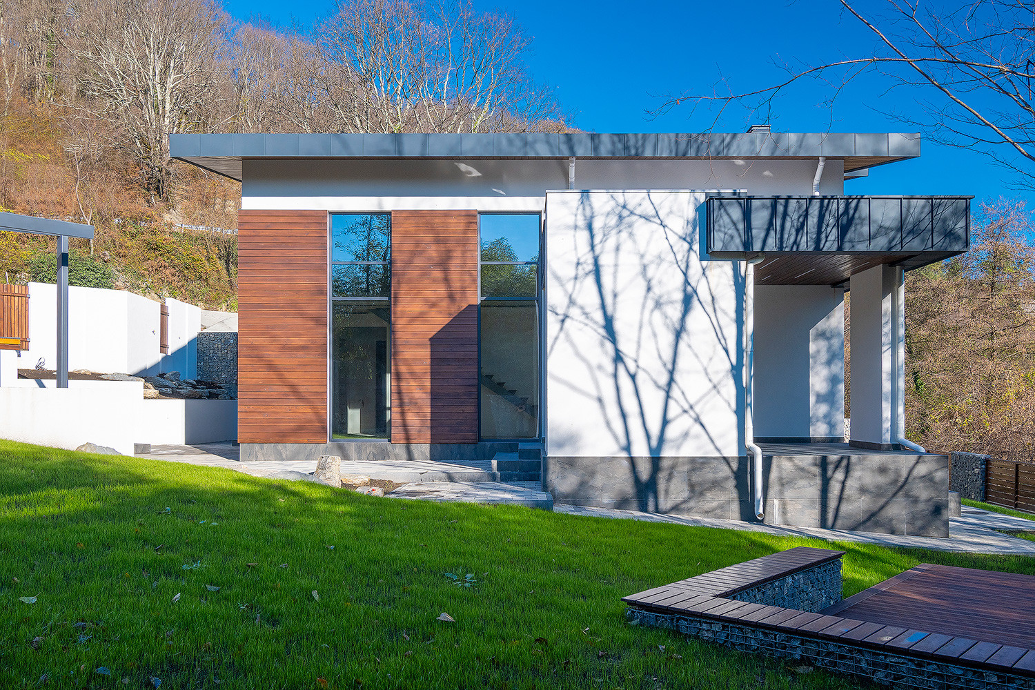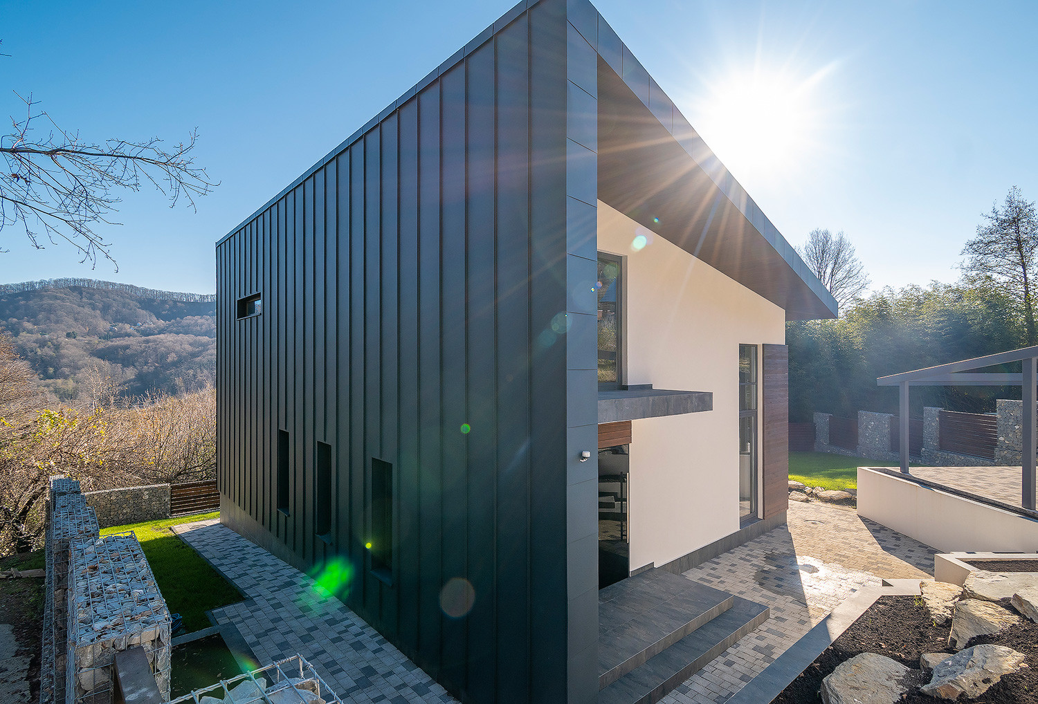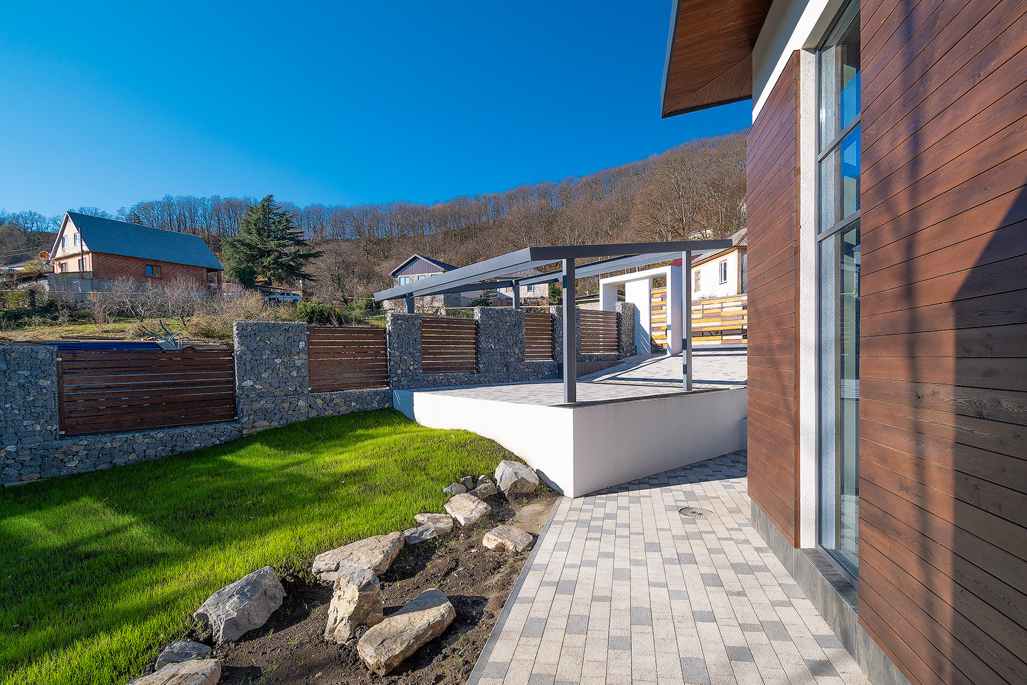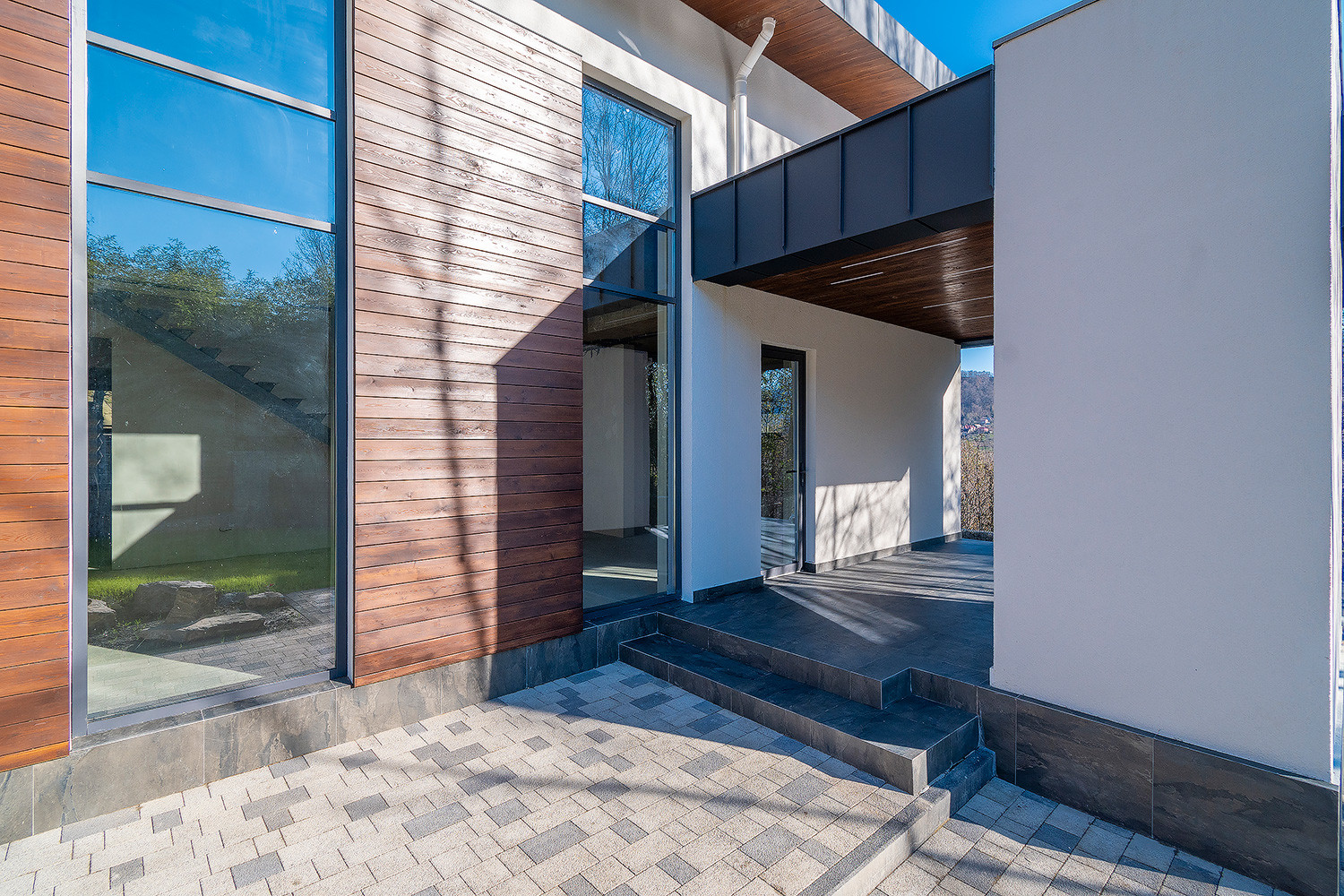 В доме имеются 3 отдельные комнаты, шикарный второй свет с высотой потолков 5-6метров, 3 санузла в т.ч. 1 личный в мастер спальне. Большие панорамные окна из алюминиевого профиля.