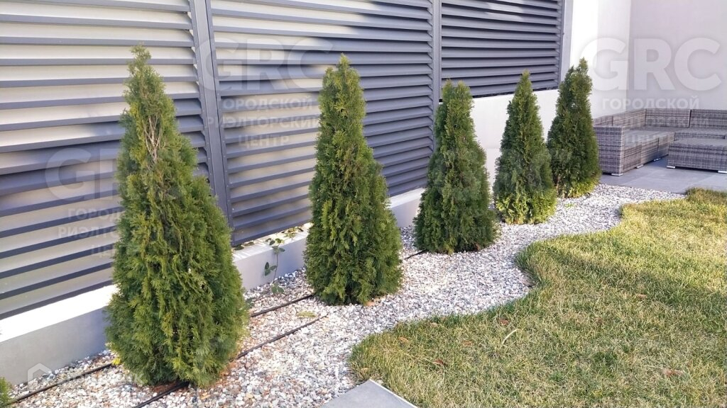 На участке высажены туи, лавровишня, произведено озеленение участка