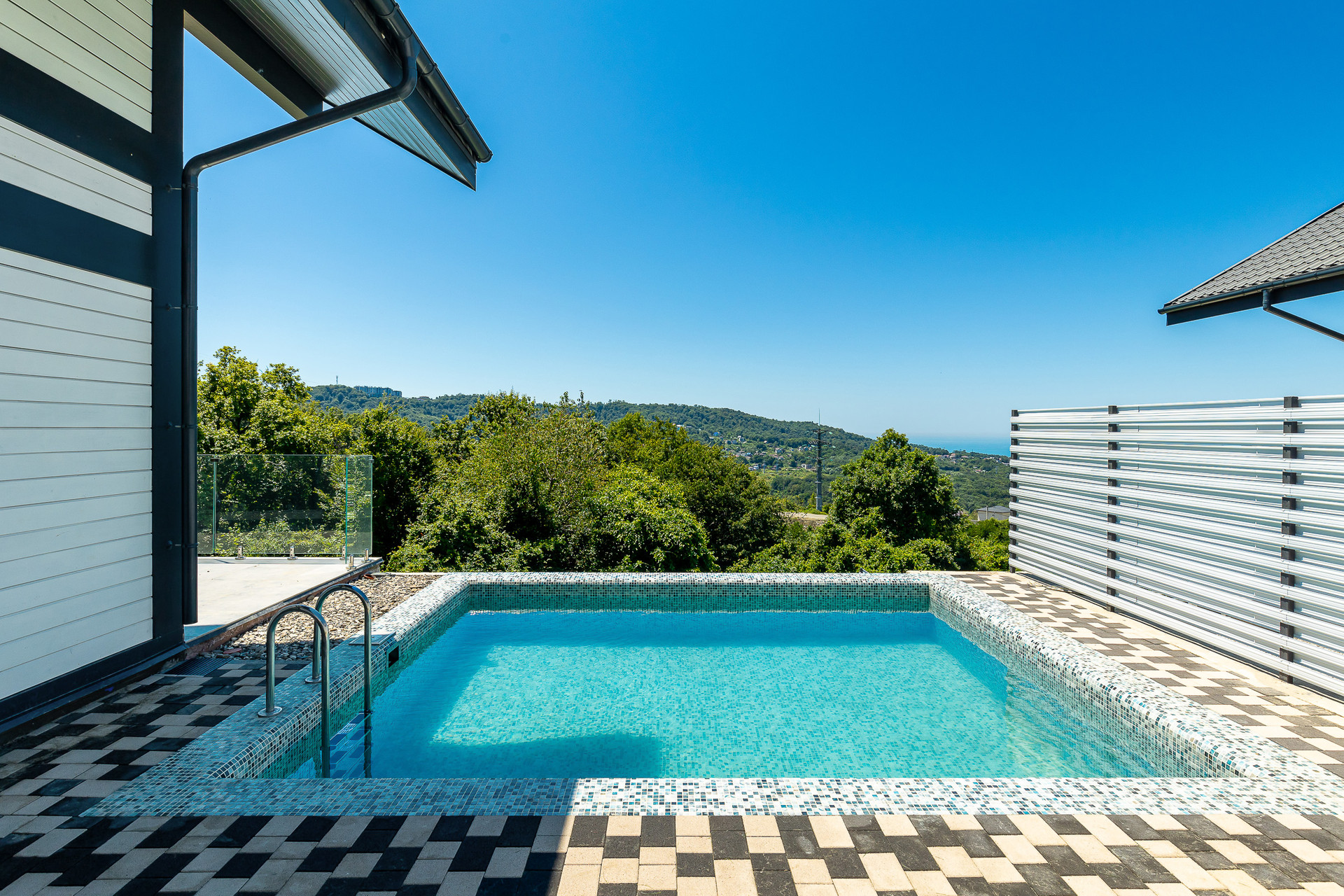панорамный вид на море, закрытая охраняемая территория на 30 домов в окружении нацпарка, очень достойные соседние дома, подъезд бетонка.