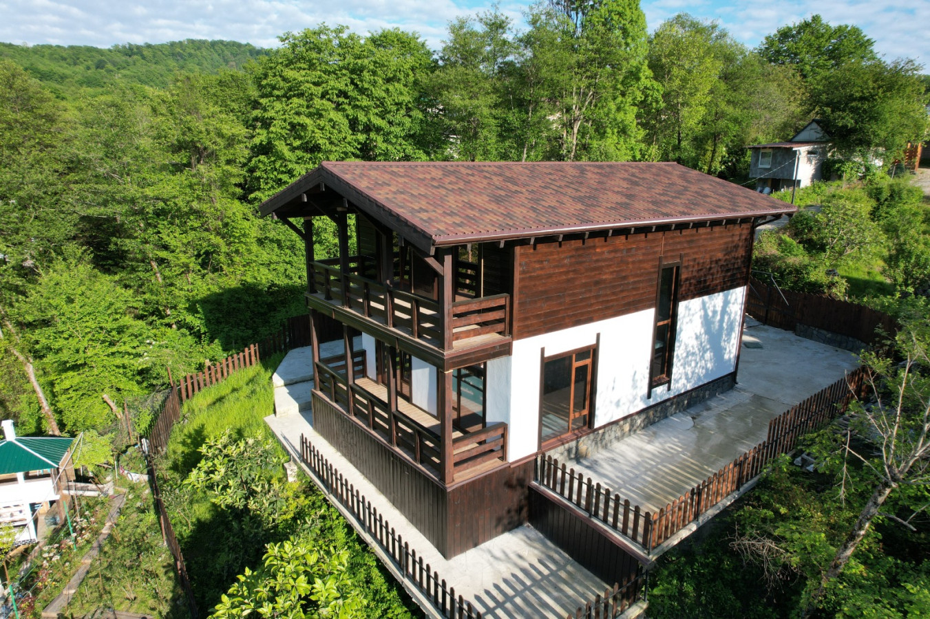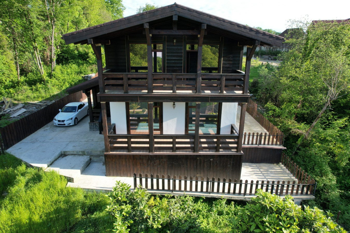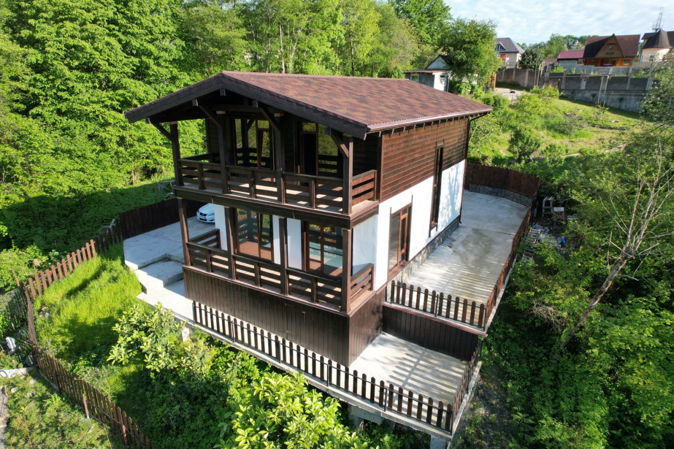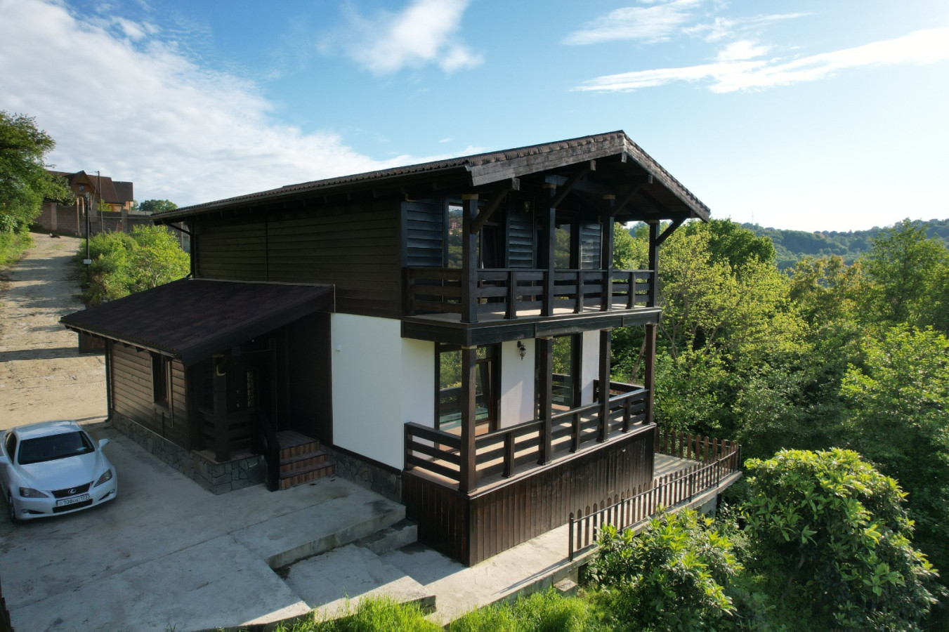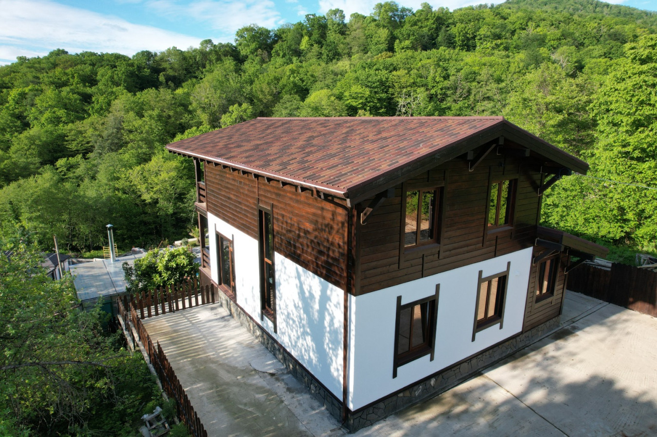Продается новый дом , в окружении гор и лесного массива .  Внутри черновая отделка и свободная планировка . На участке есть место под бассейн и беседку , впереди дома парковка на 3 машины . По периметру выполнено водоотведение . Рядом с домом есть вся необходимая инфраструктура : остановка , продуктовые магазины , кафе , школа . Звоните .
