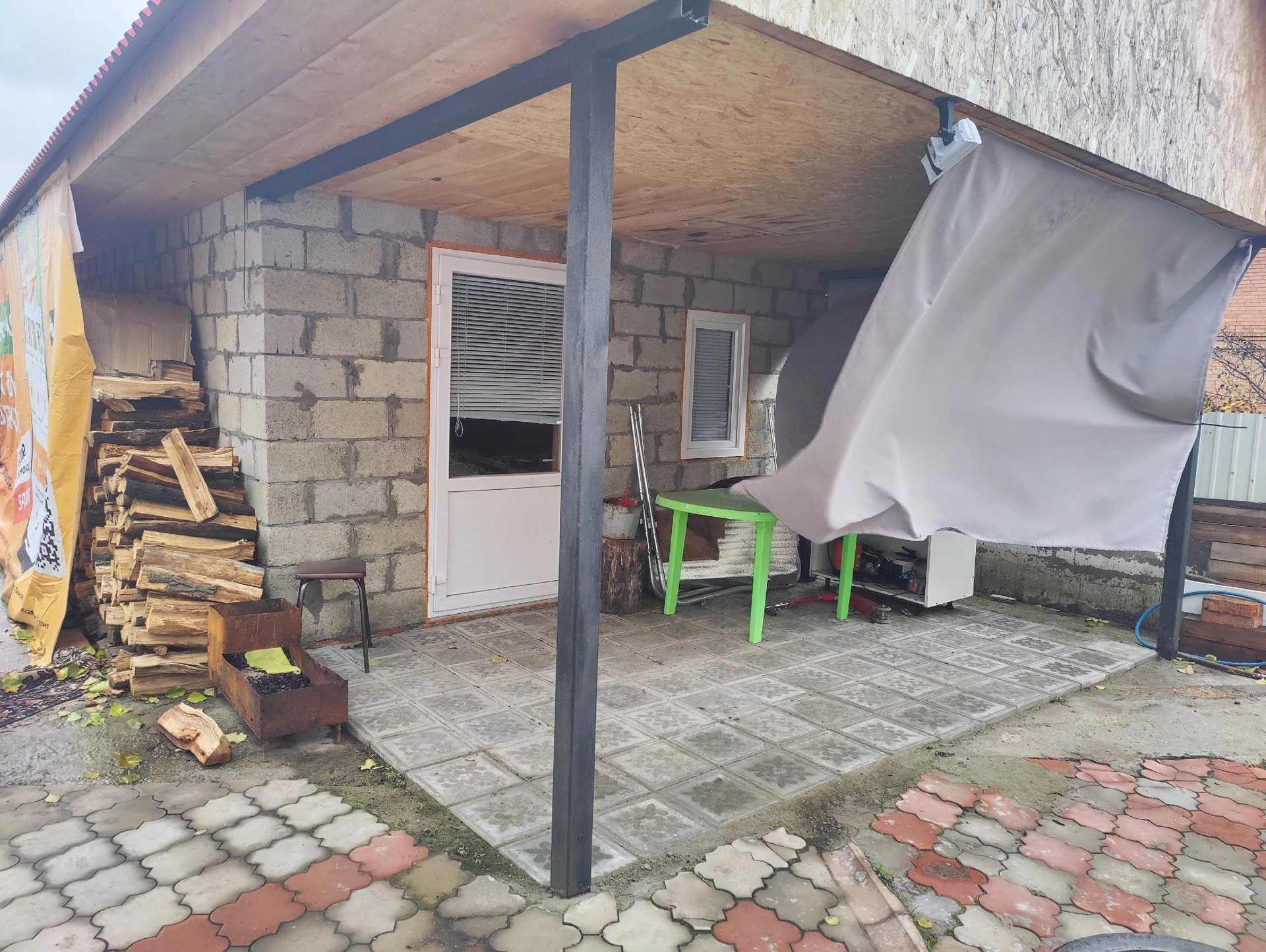 На участке за домом посажены несколько плодовых деревьев, кусты малины крупной, клубника, виноград. Места под посадку овощей вполне хватает.