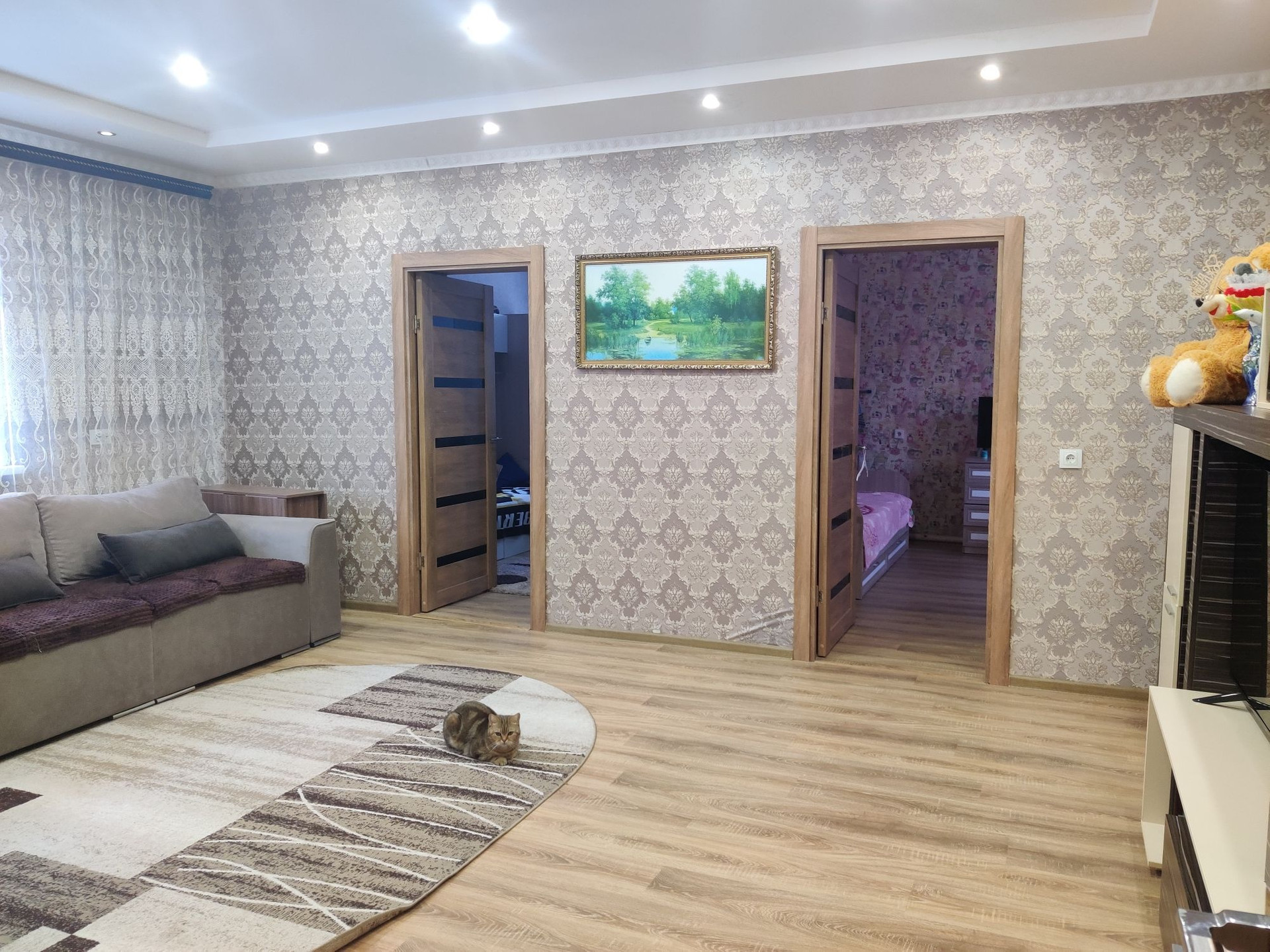 В доме 3 спальных комнаты, гостиная, просторная кухня 15.7 кв.м, туалет и ванная раздельные, котельная. Выход из дома на обе стороны.