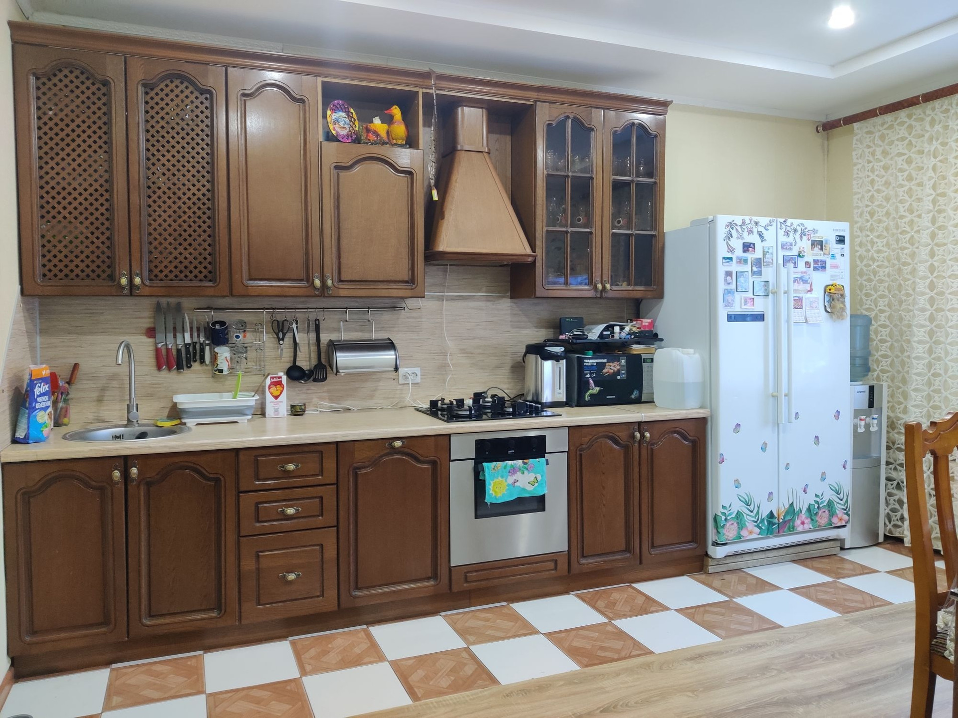 Продается с мебелью, как есть. На кухне остается гарнитур со встроенной техникой - посудомойка, плита, духовой шкаф.
