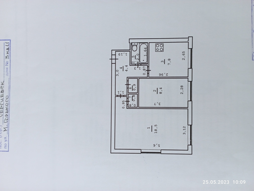 2-комнатная квартира, 42.8 м2, этаж 1 / 2, на продажу в селе Сергиевск, улица М. Горького, 3
