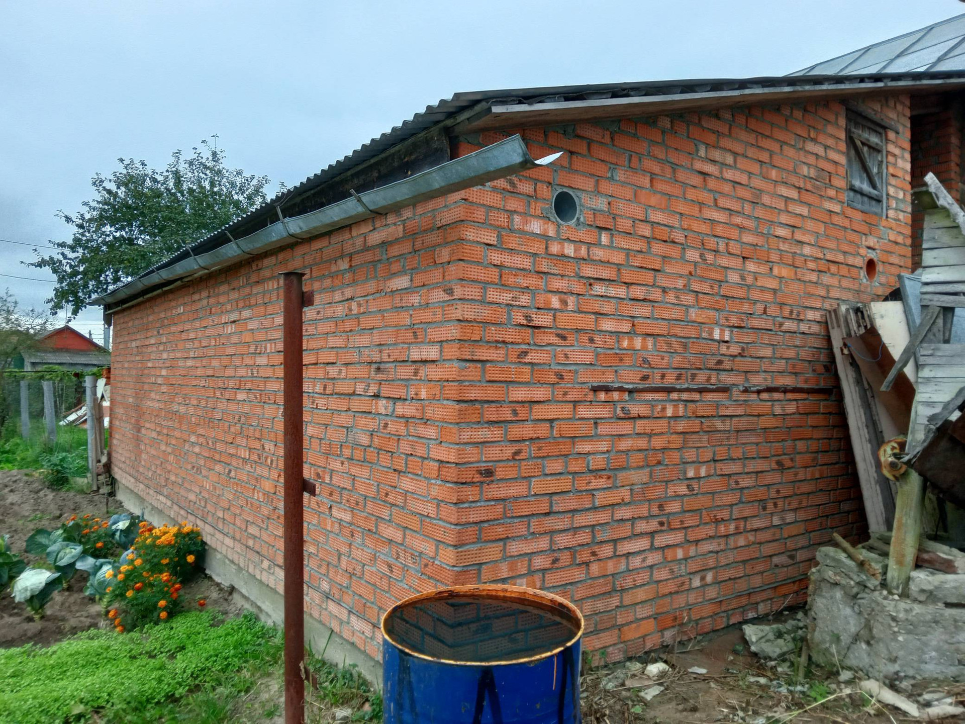 К дому пристроен гараж с ямой.