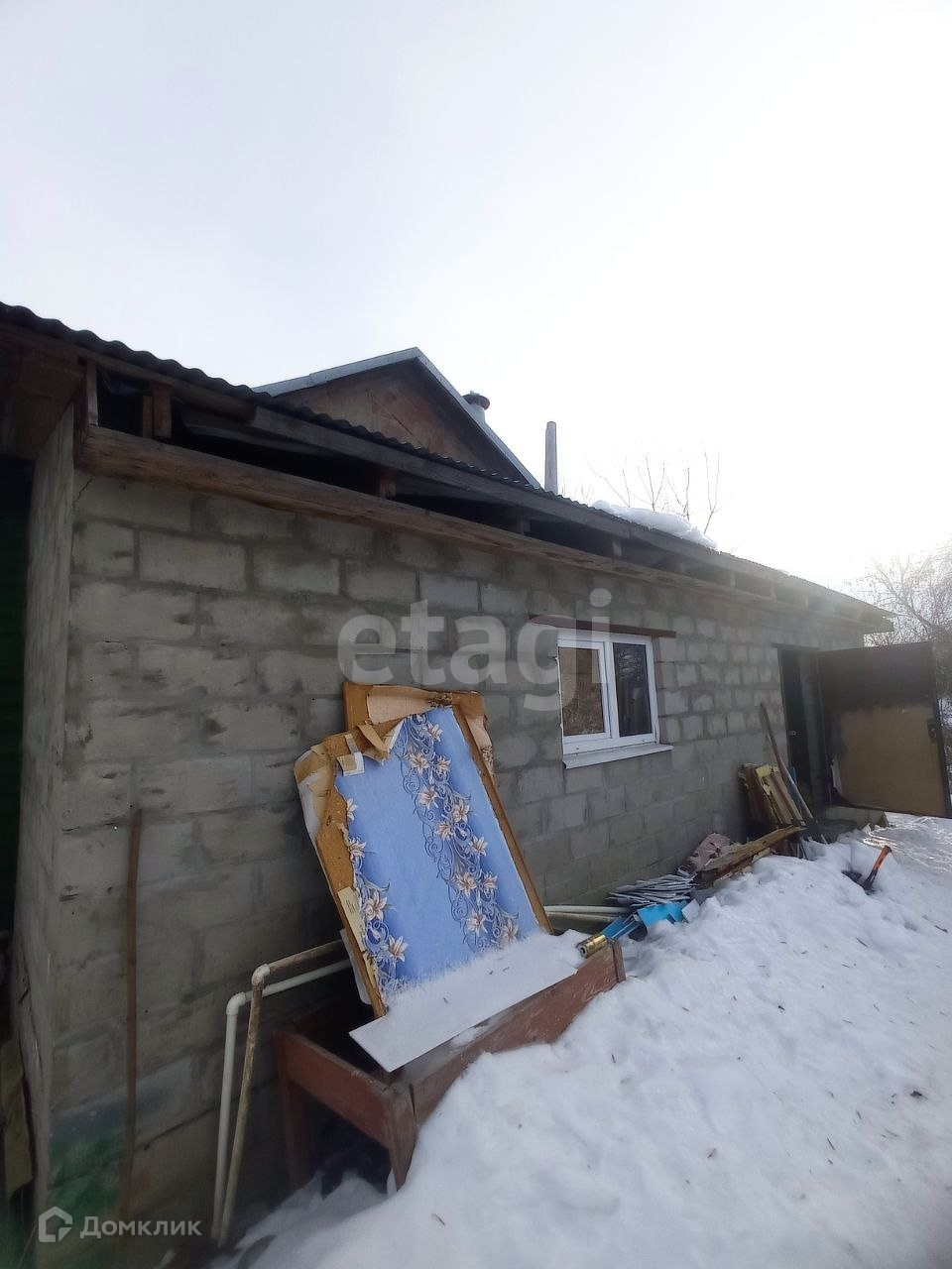Дом, бревенчатый с блочной пристройкой