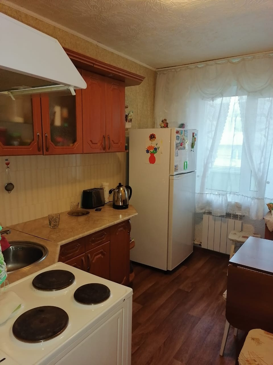 Уютная, теплая квартира.  Большая лоджия застеклена. Рядом школа, остановка транспорта.
