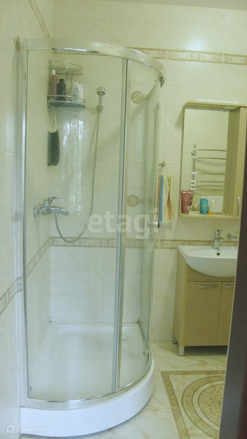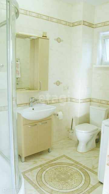 На первом этаже: просторная гостиная-кухня, санузел с душевой кабиной.