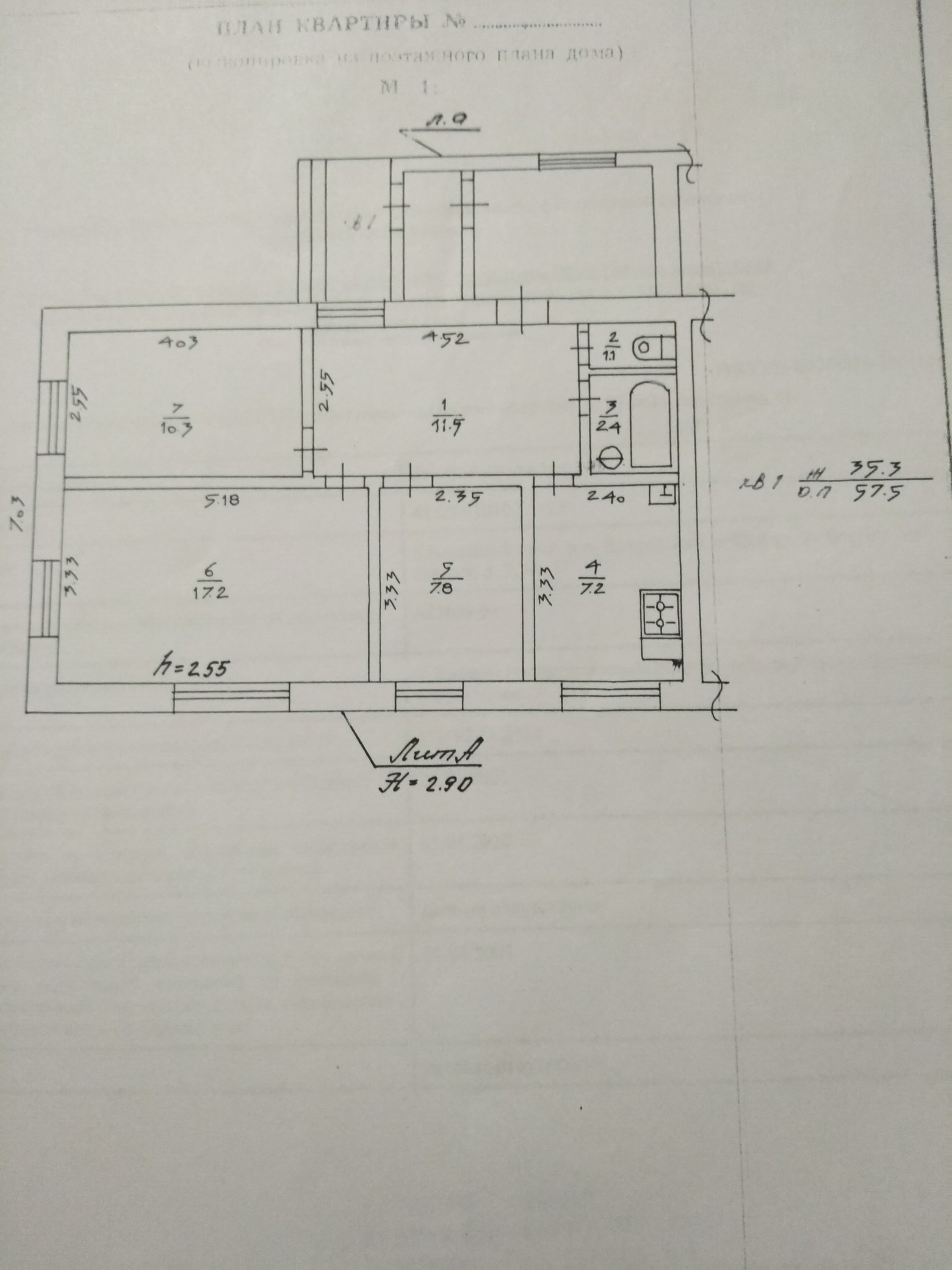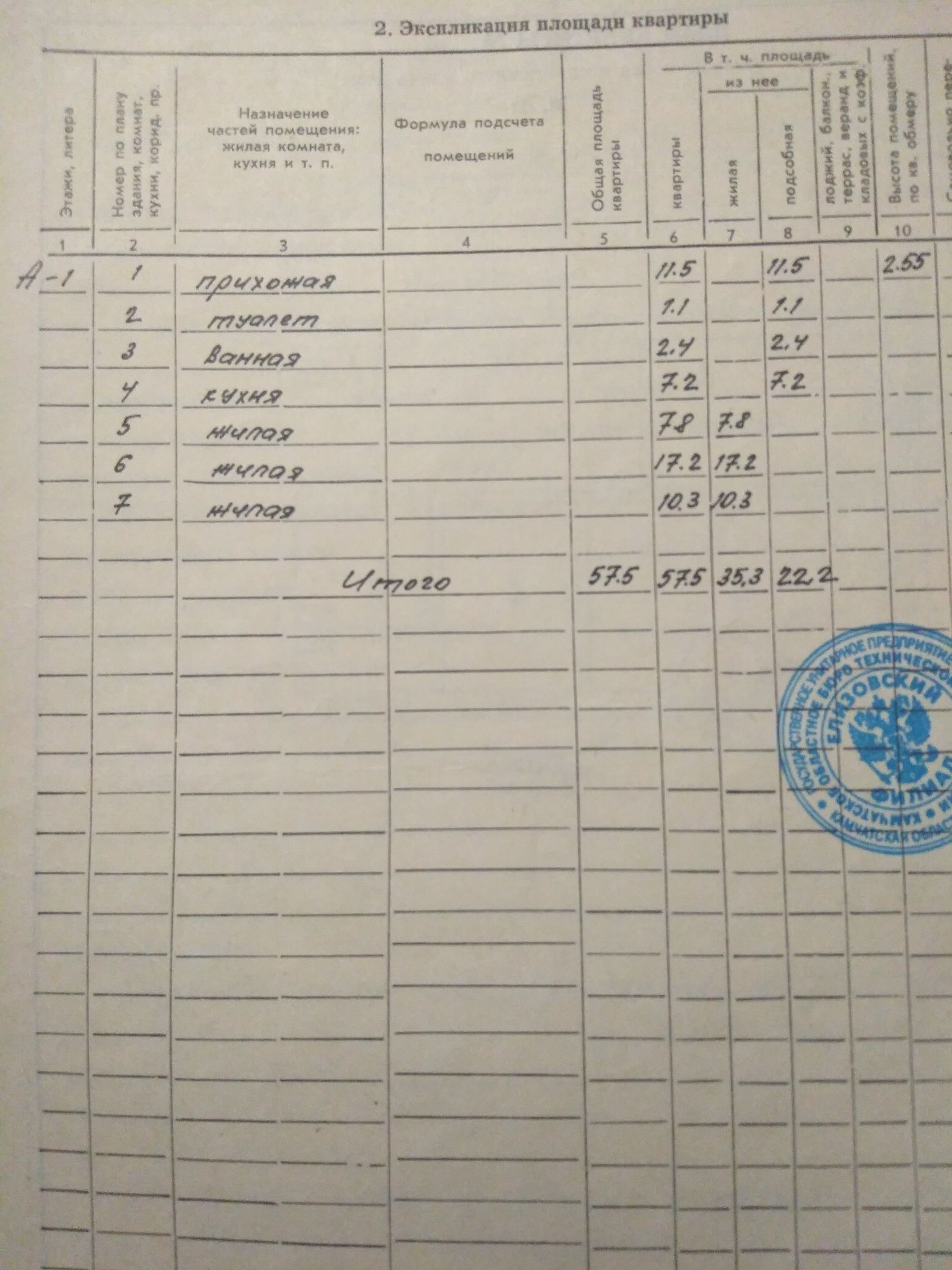 Общая площадь 57.5 м2