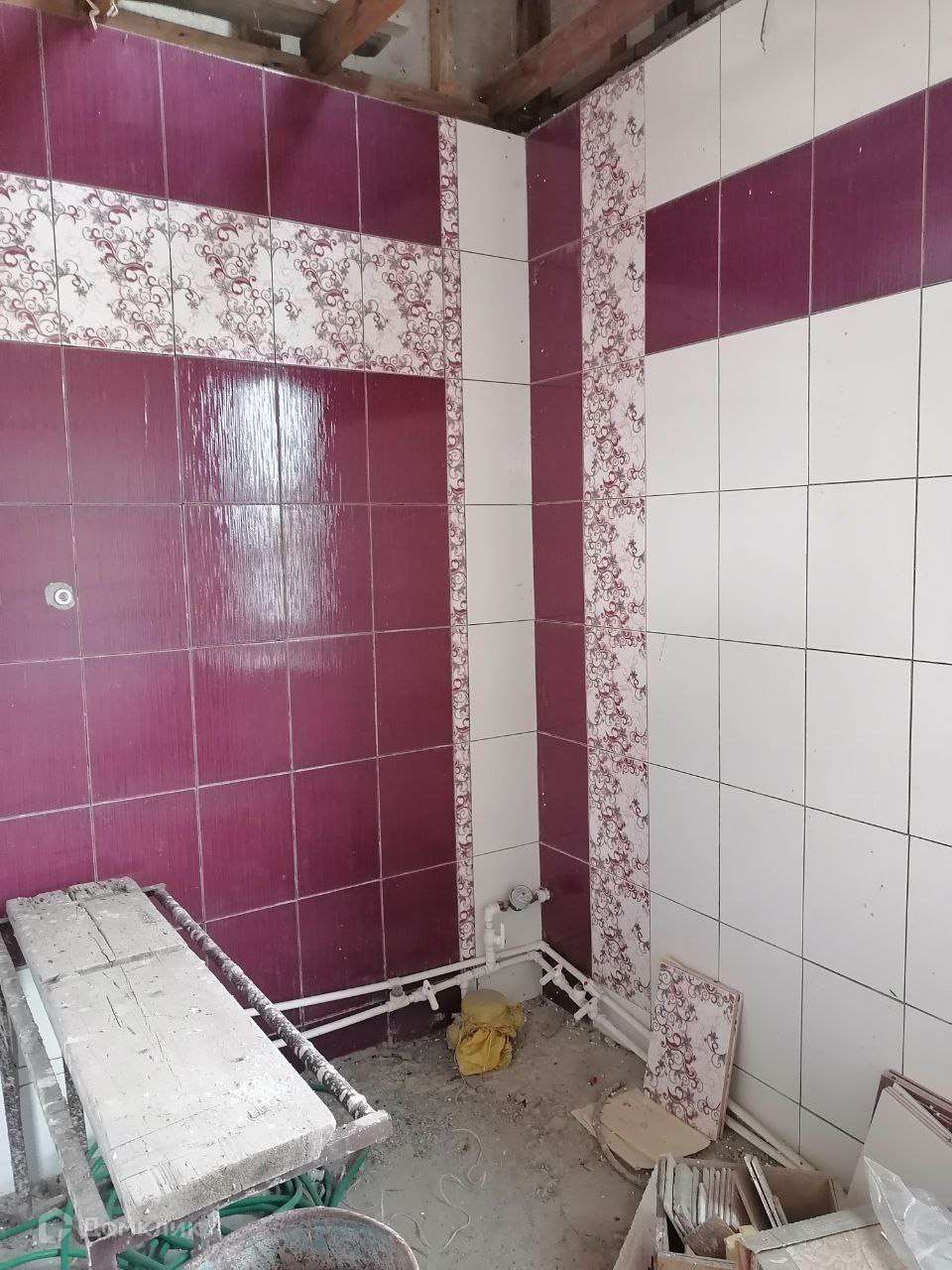 Первый этаж представляет собой просторную студию (зал-гостиная и кухня) свободной планировки (32 кв.м.), санузел. Проведена система "теплый пол". Санузел частично в кафеле. Имеется плитка для продолжения ремонта и керамогранит двух видов для напольного покрытия в зале. Окна ПВХ.