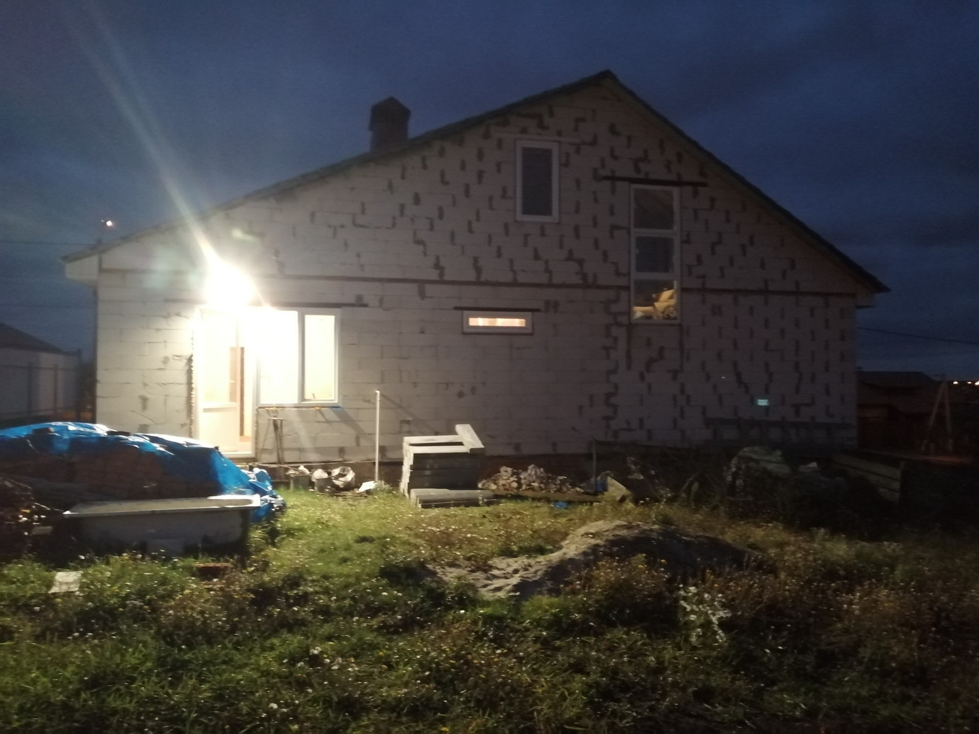 Фундамент ленточный, блоки аэробел, перекрытия дерево, крыша мелаллочерепица.