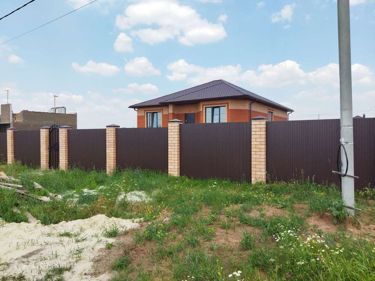 Спальни 3, кухня-гостинная с выходом на террасу, терраса, сан-узла 2, подвал, забор, калитка, ворота