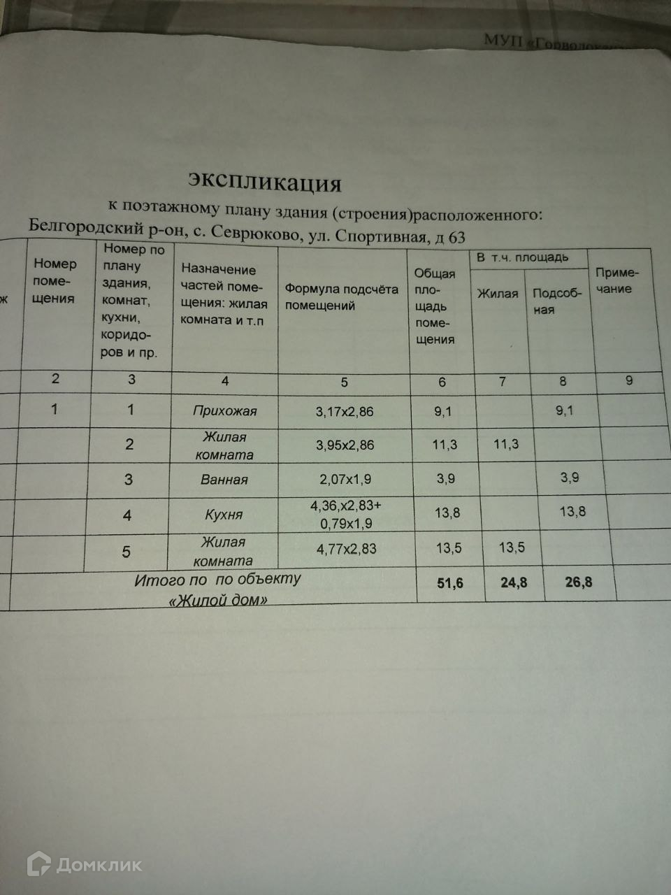 1-этажный дом, 56 м2, на продажу в селе Севрюково, Спортивная улица