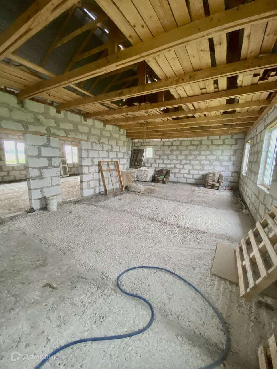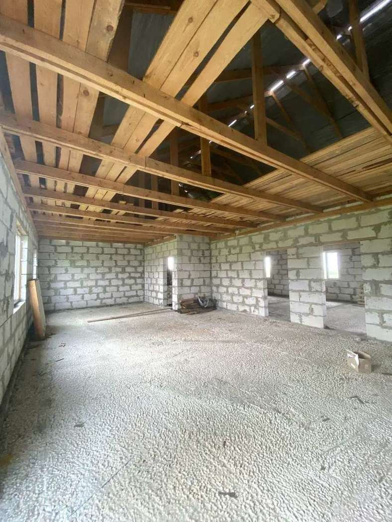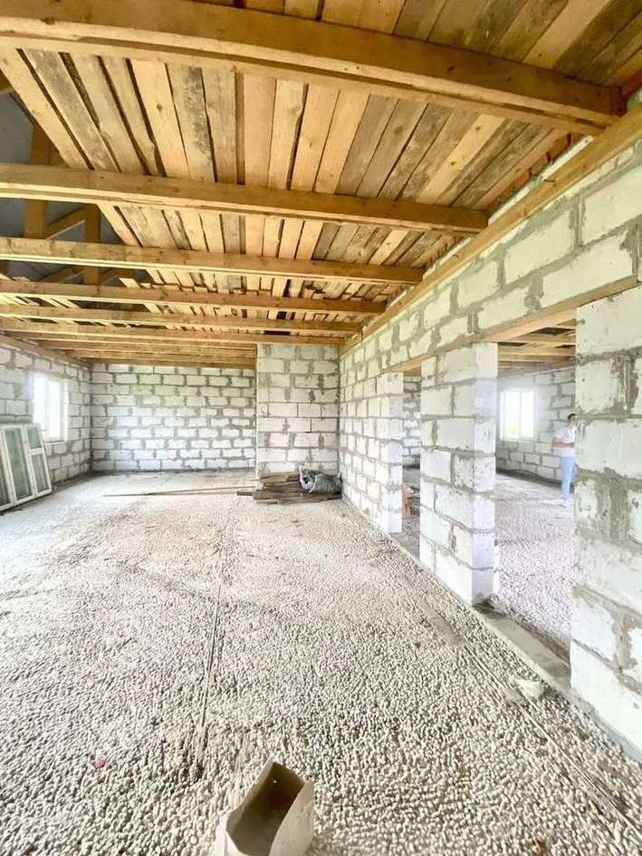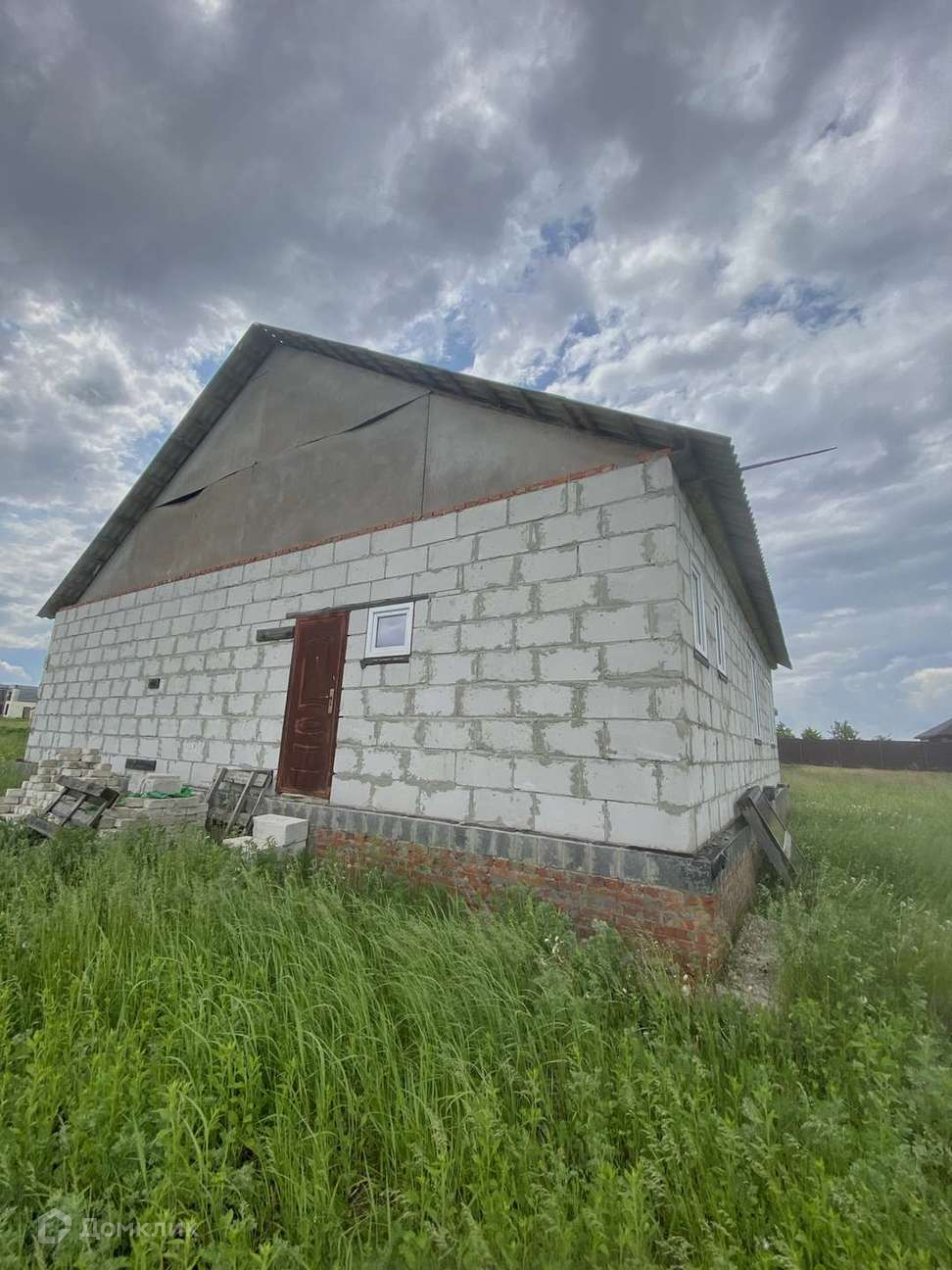 Дом выполнен из блоков аэробел, установлены пластиковые стеклопакеты, входная дверь.