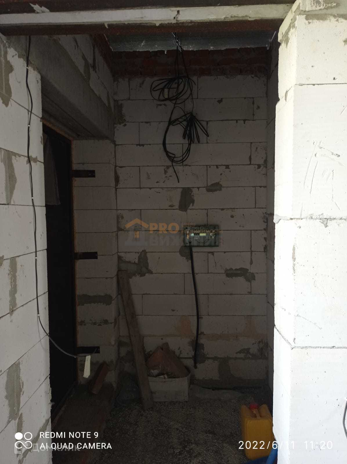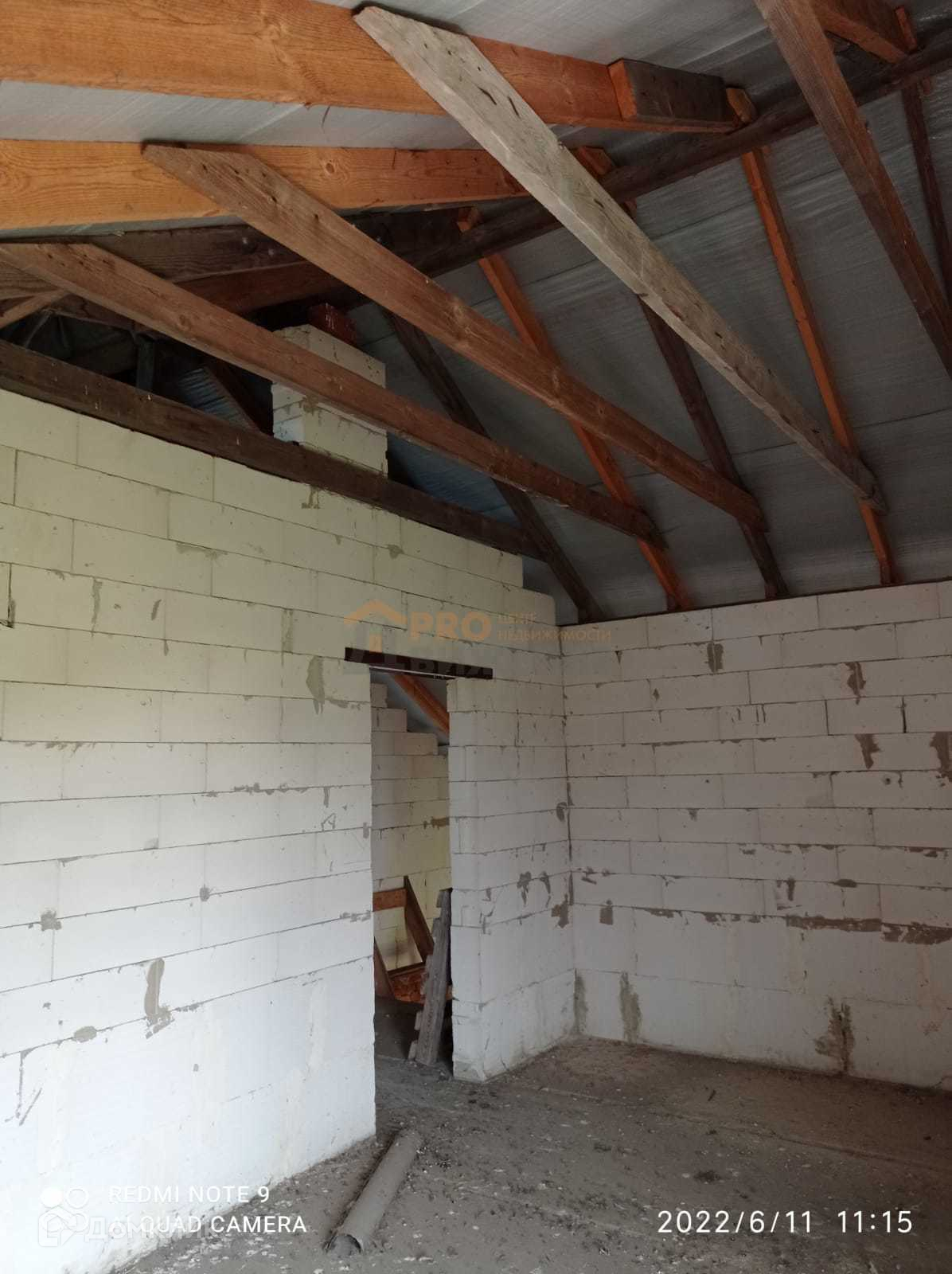 Второй этаж - небольшой коридор, три комнаты, одна из них с балконом, туалет. Залит фундамент под гараж слева от дома. Электричество заведено в дом, водоснабжение и канализация центральные.