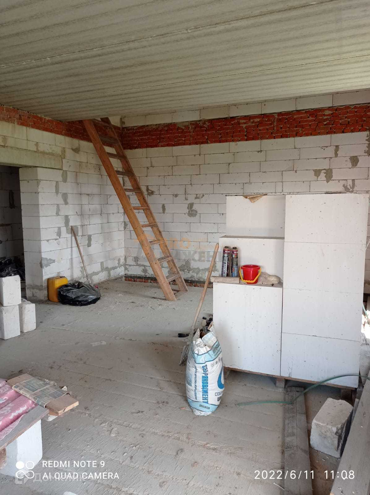 Второй этаж мансардного типа, плиты перекрытия ЖБК, стены Аэробел (каждый четвёртый ряд армированный), под половиной дома - цоколь (выложен кирпичем).