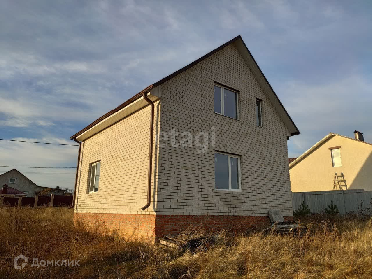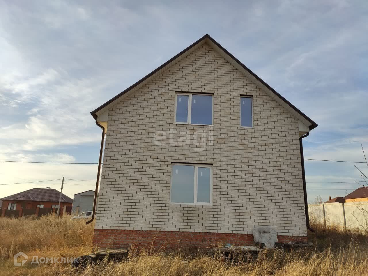 Продаётся двухэтажный жилой дом в селе Севрюково Белгородского района. Он расположен на асфальтированной улице в окружении других домов на ровном участке площадью 15 соток. Участок огорожен забором с трёх сторон. Отдельного парковочного места нет.