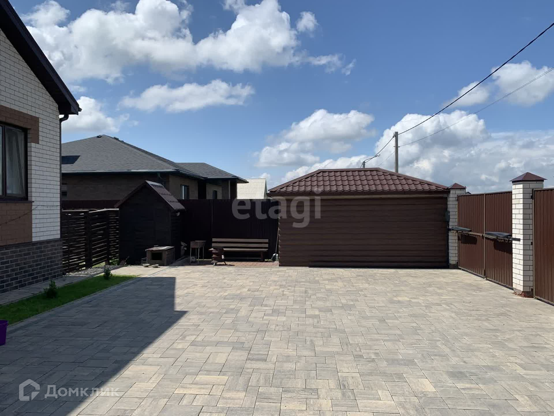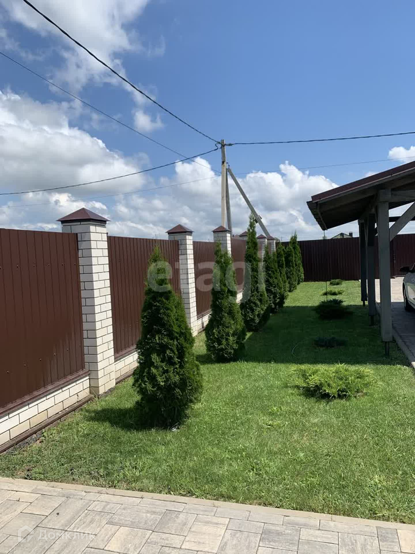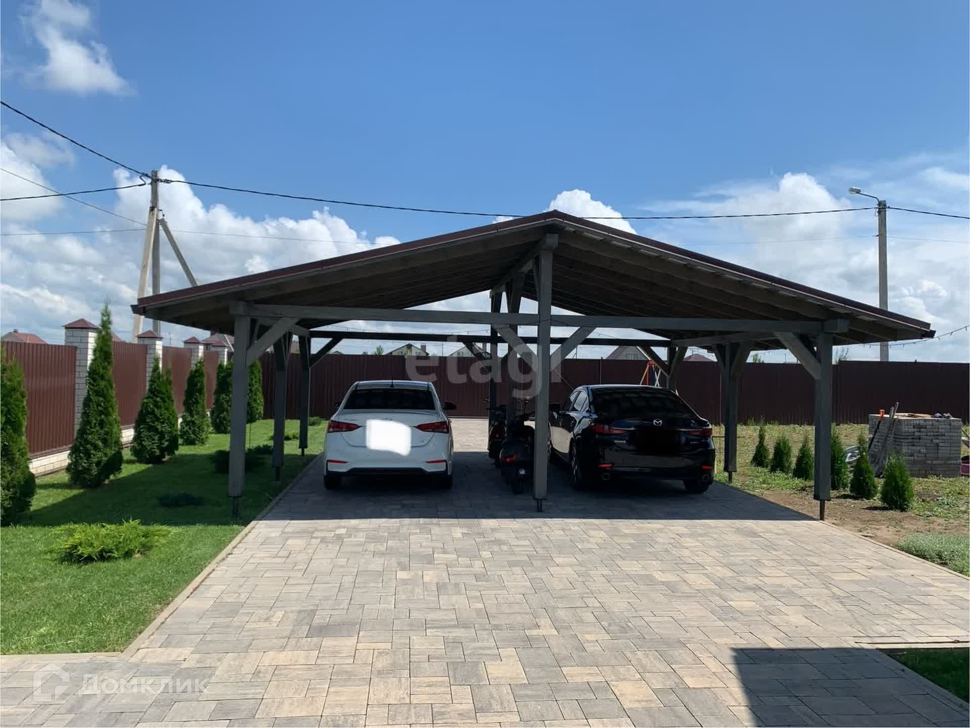 Участок 15 соток (угловой), огорожен со всех сторон. На участке имеются несколько ворот, создано въездное и выездное движение авто. Также есть технические ворота для проезда сельхозтехники, очень удобно. Имеется навес для двух машин, так же во дворе есть зона отдыха, вольер для большой собаки, в саду фруктовые деревья.